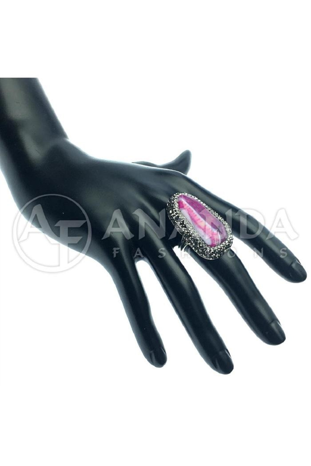 Handcrafted 925 Silver Ring with Agate, Hematite and Swarovski Crystals. Size adjustable. Rhodium overlay.