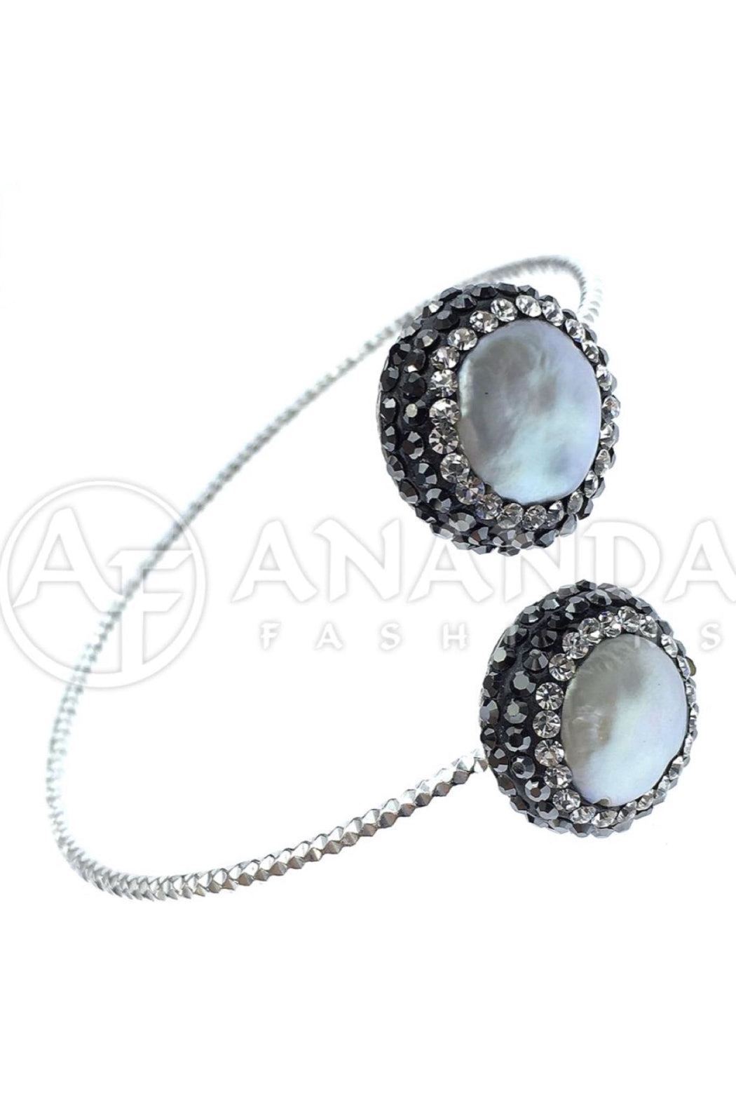 Handcrafted 925 silver bracelet with fresh water pearls, hematite and Swarovski crystals.
