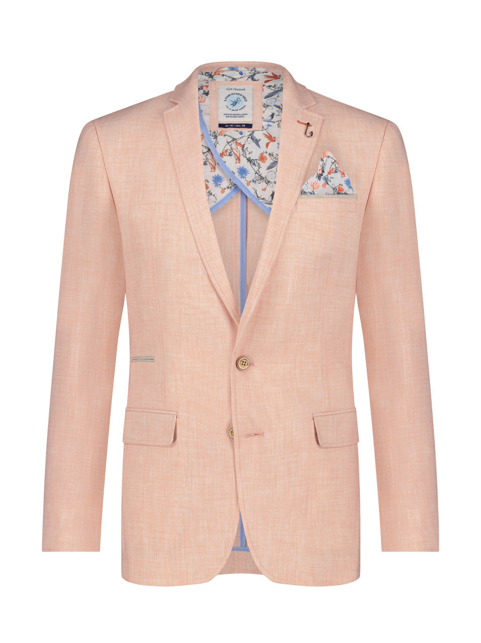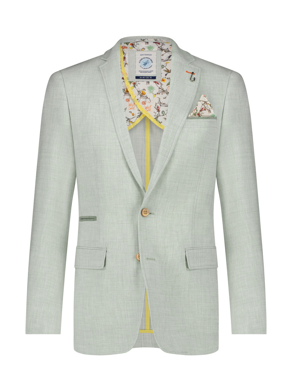 Elevate your wardrobe with A Fish Named Fred's Linen-Look Blazer. Crafted with a blend of linen, polyester, spandex, and rayon, this blazer offers breathable comfort and durability. The added stretch makes it perfect for all-day wear, while the unique printed lining adds a touch of personality. Complete your look with a matching printed shirt for effortless style at any event.