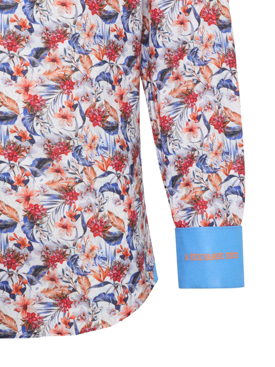 Catch everyone's attention with this "A Fish Named Fred" shirt featuring a playful floral design. Made to stand out, this fun shirt is perfect for anyone who wants to add a touch of quirkiness to their wardrobe.