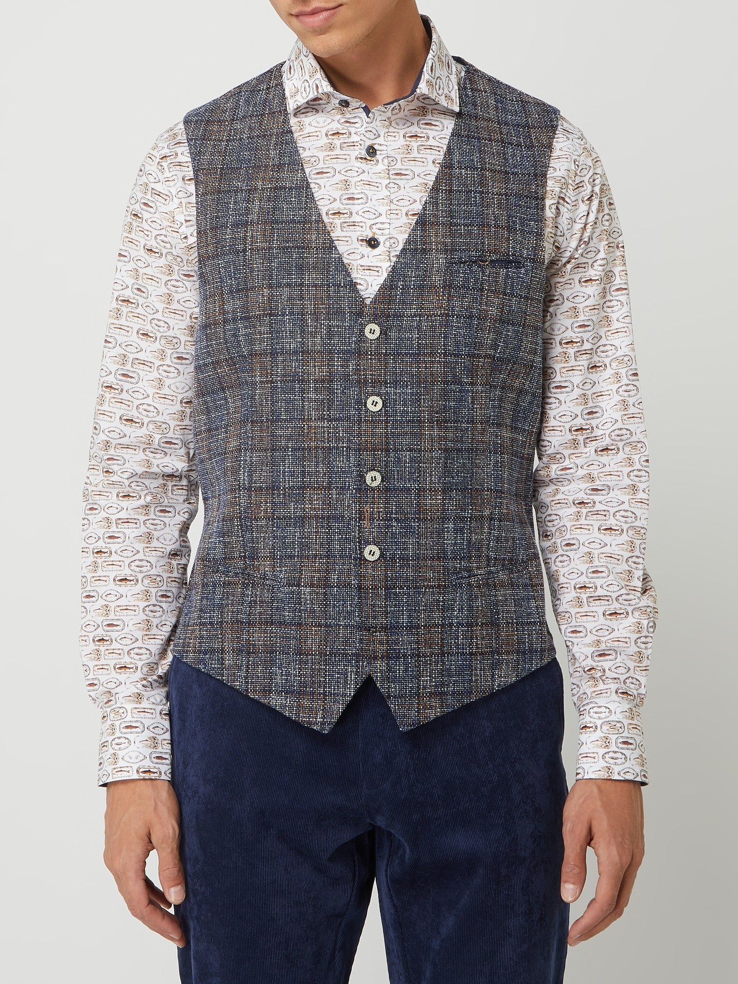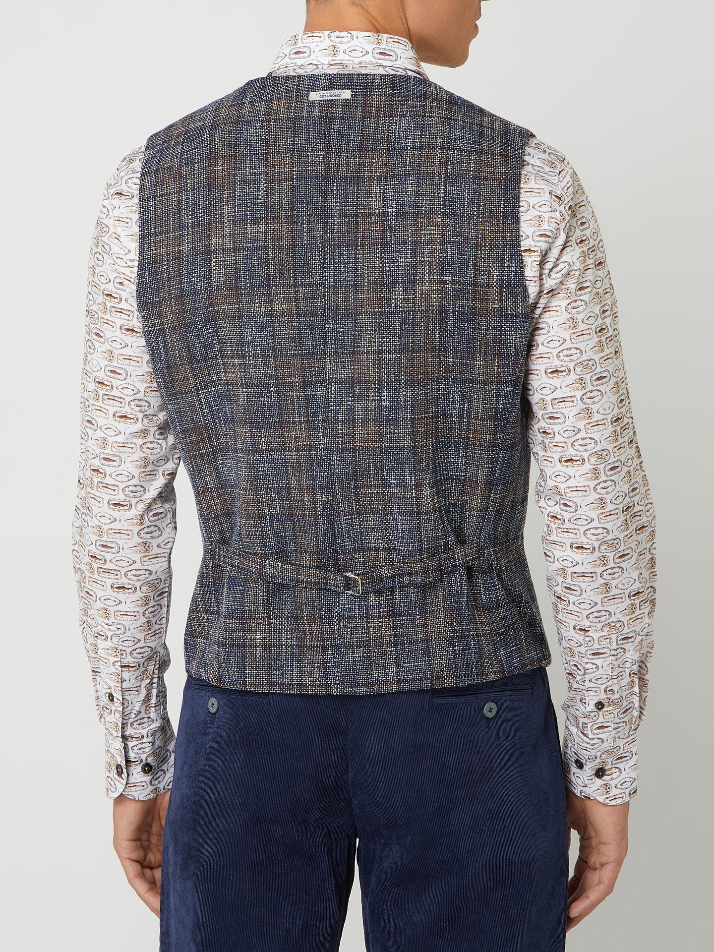 Expertly crafted for the modern gentleman, the A Fish Named Fred Woven Chequed Waistcoat offers a sleek slim fit and a luxurious material blend with viscose content. The v-neck design and button tape add a sophisticated touch, while the adjustable strap on the back allows for a personalized fit. Perfect for any occasion.