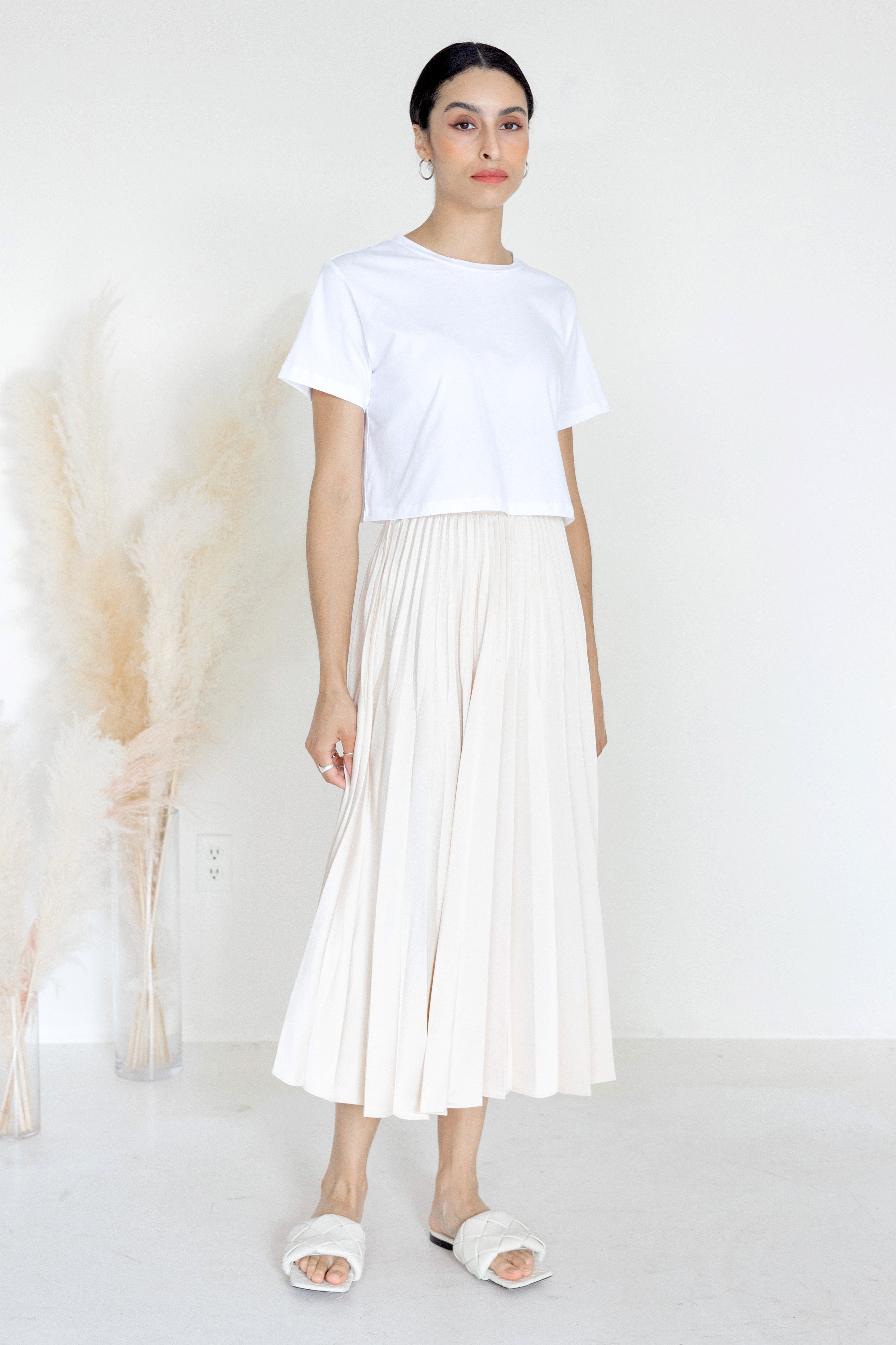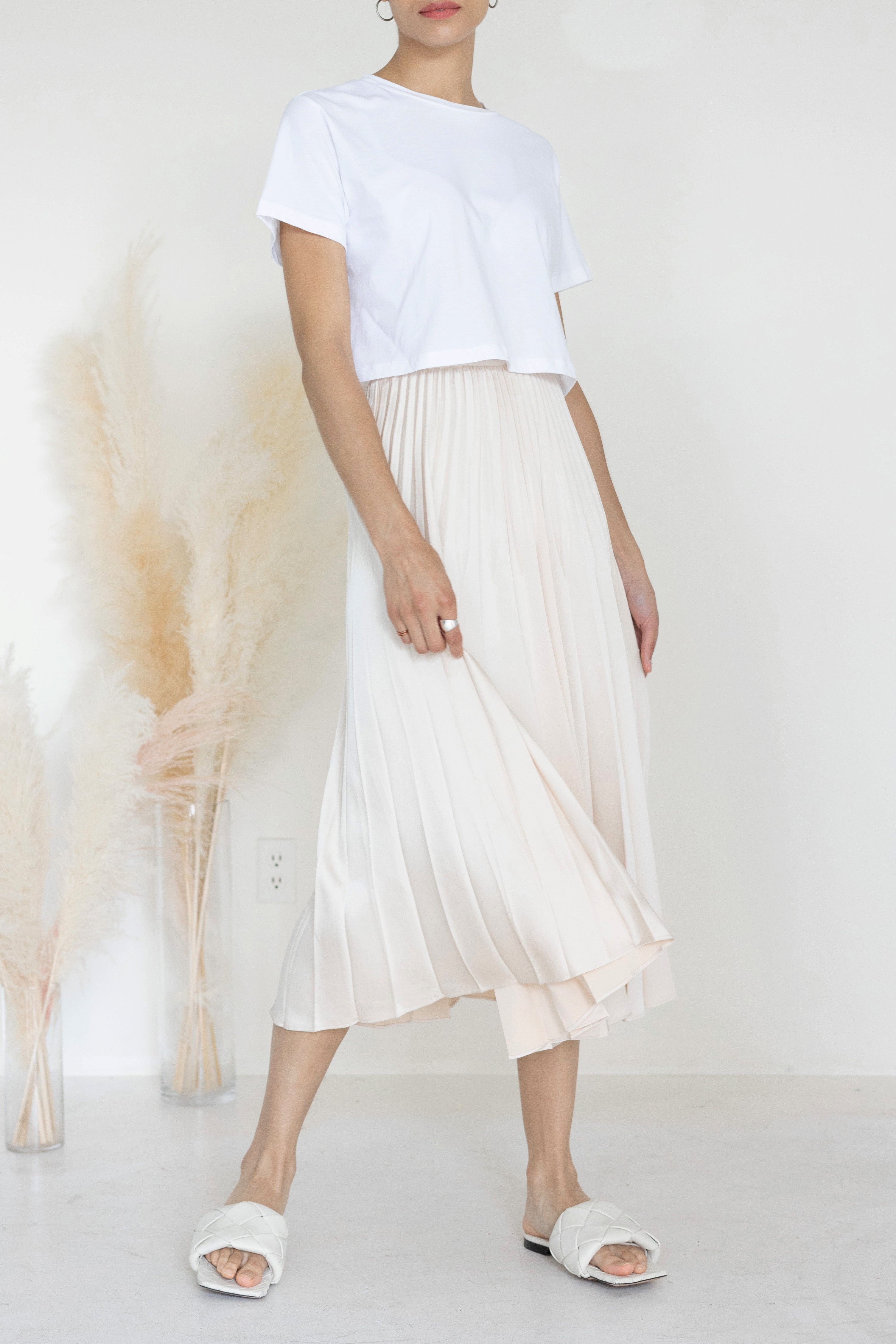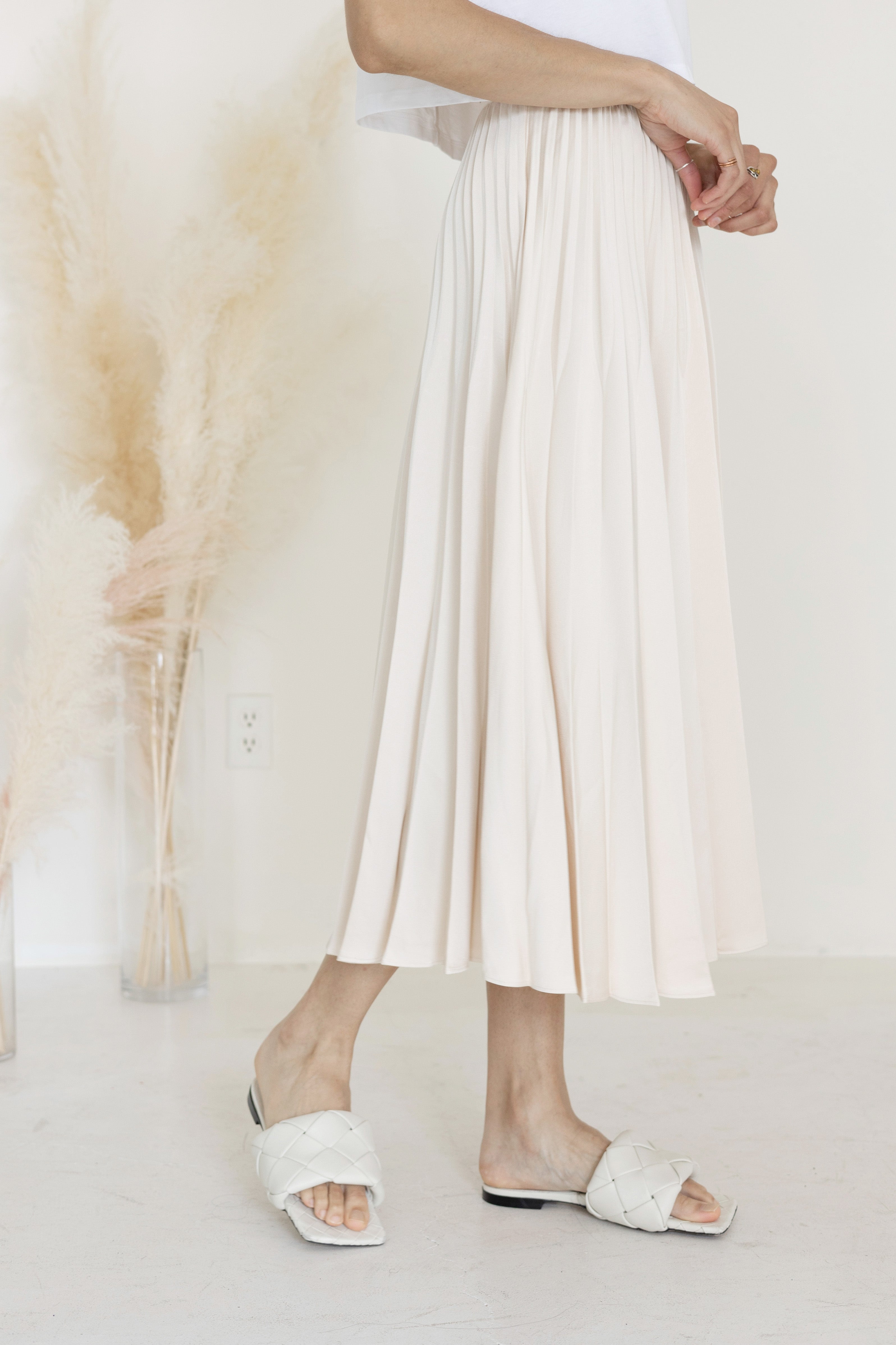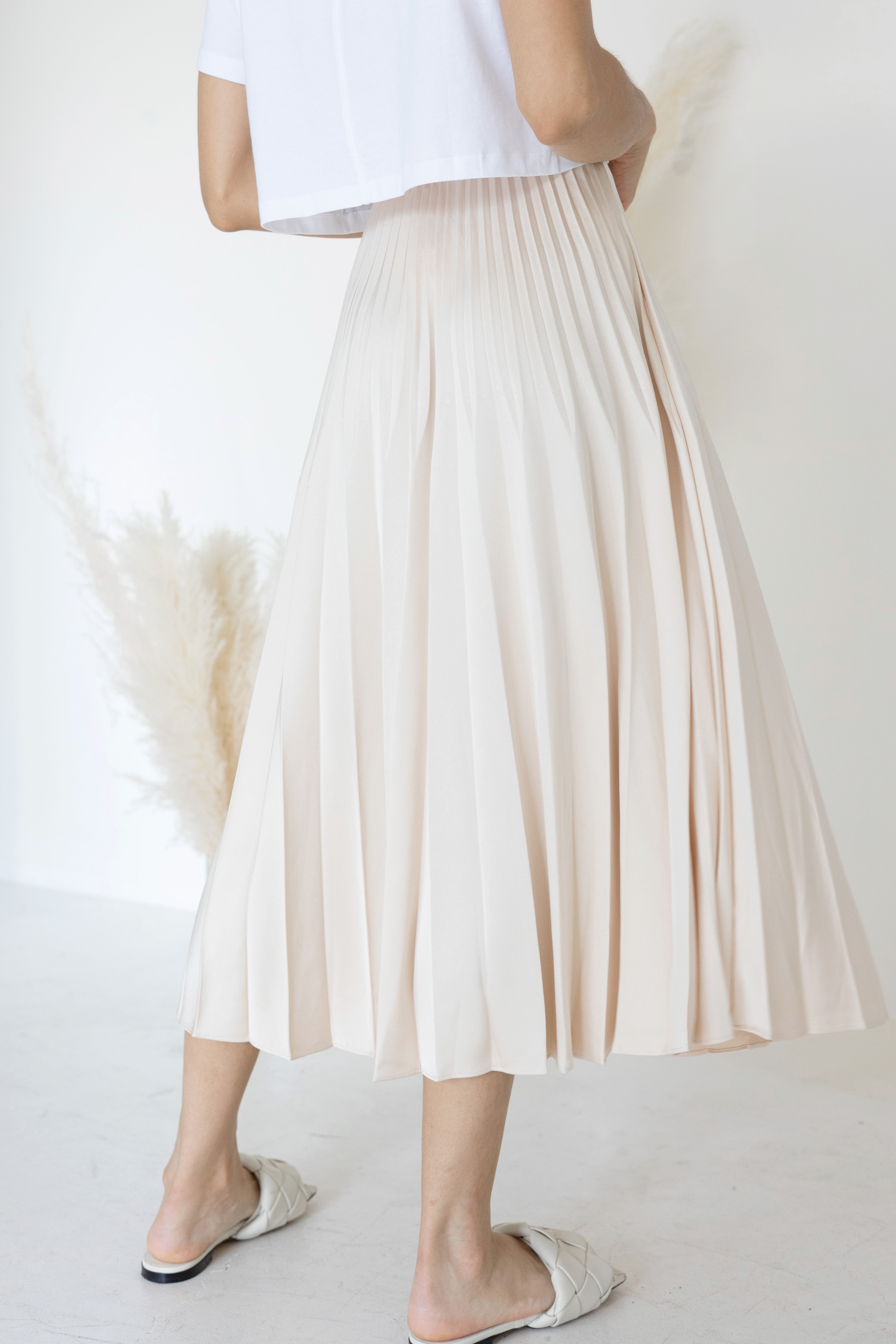 A-Line Pleated Midi Skirt Nude