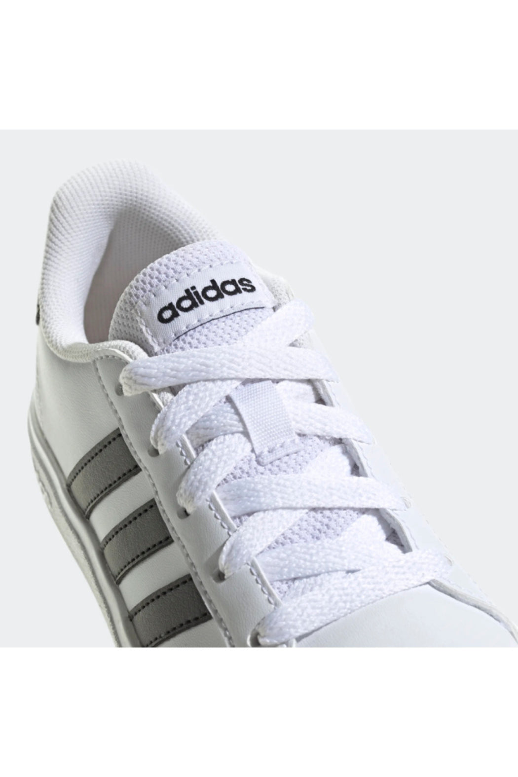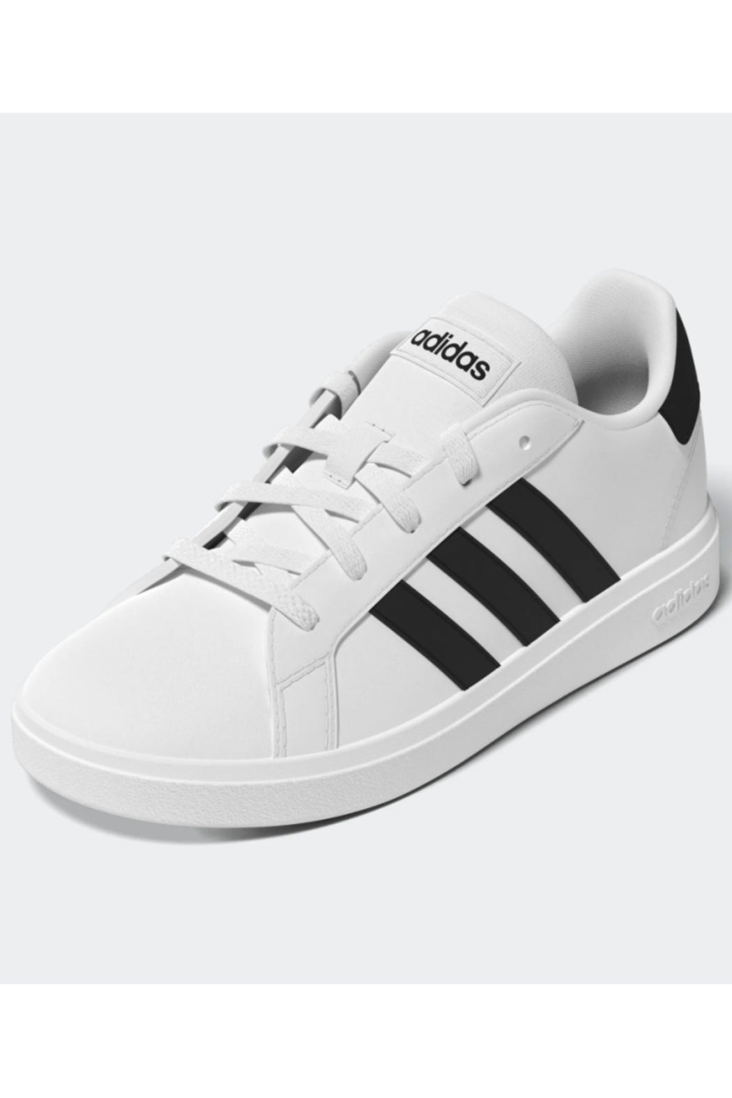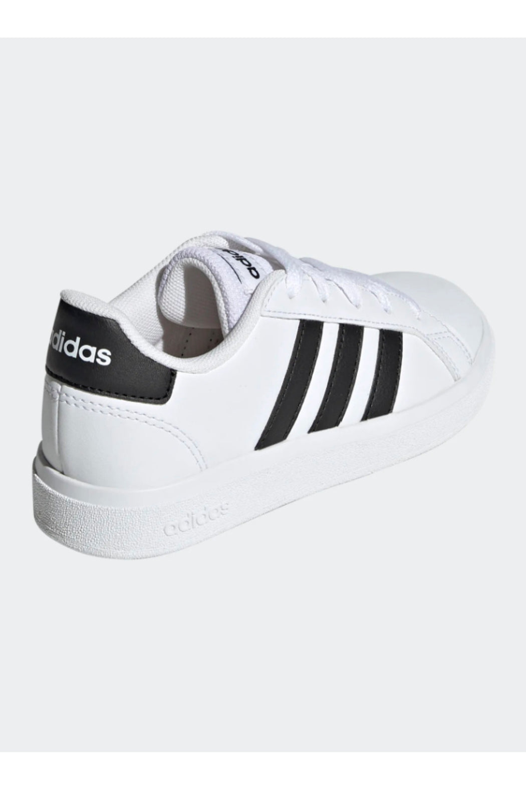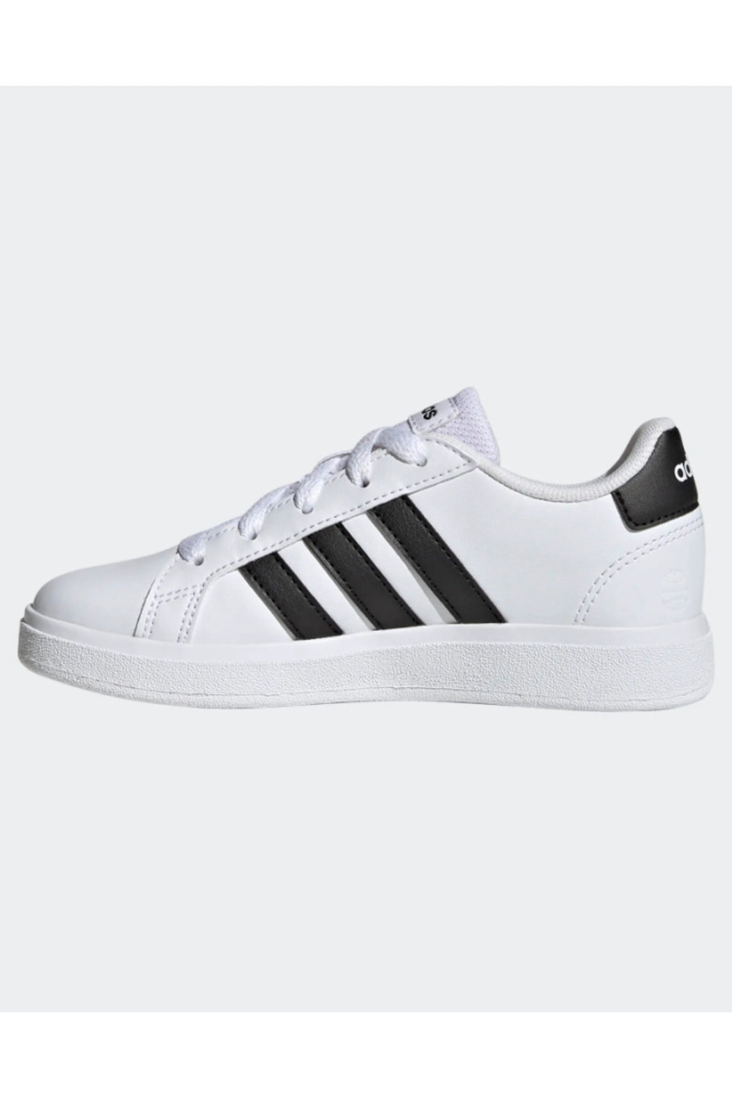 These kids' adidas tennis-inspired shoes have classic style for the blacktop or the classroom. The synthetic leather upper is soft and durable. A rubber cupsole provides the finishing touch. Signature 3-Stripes stand out on the side. Made with a series of recycled materials, this upper features at least 50% recycled content. This product represents just one of our solutions to help end plastic waste.
