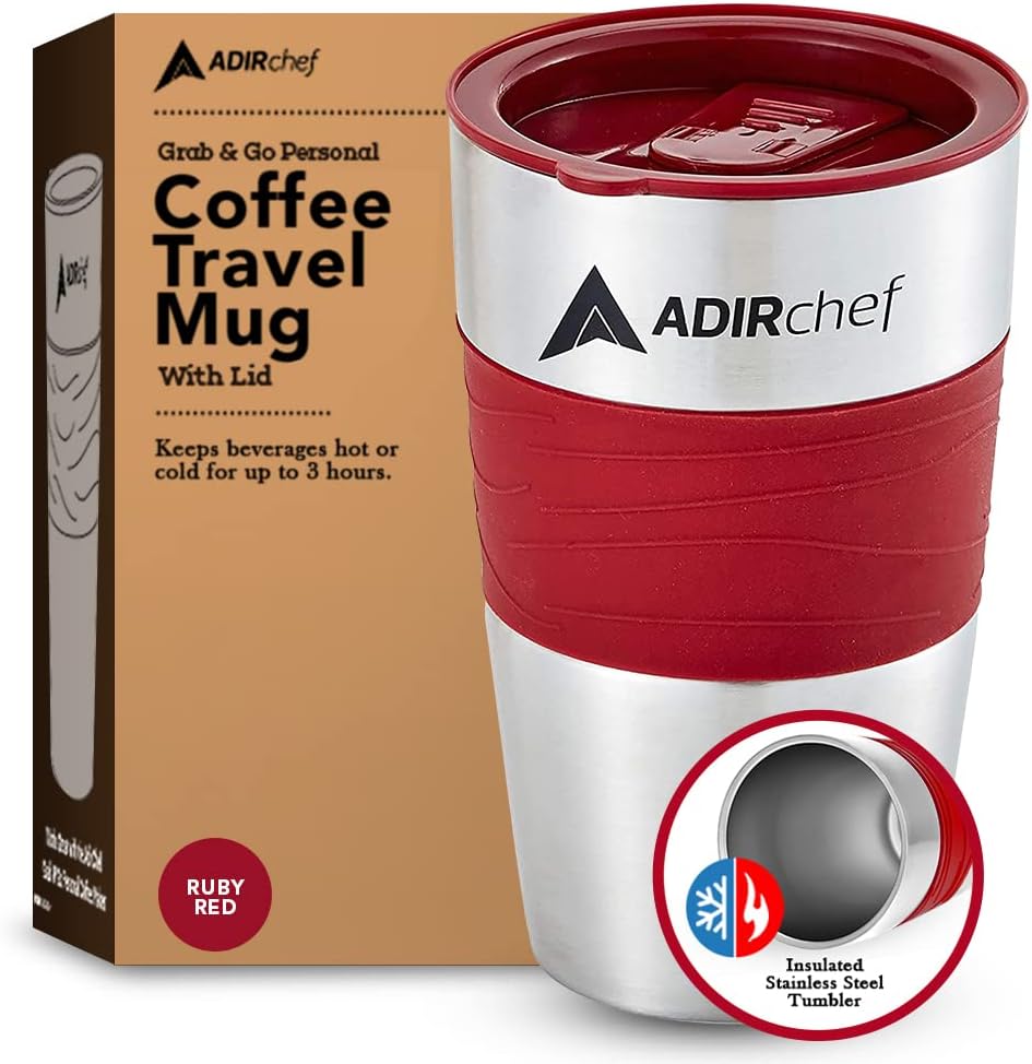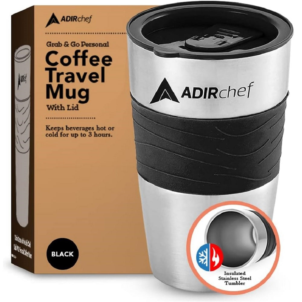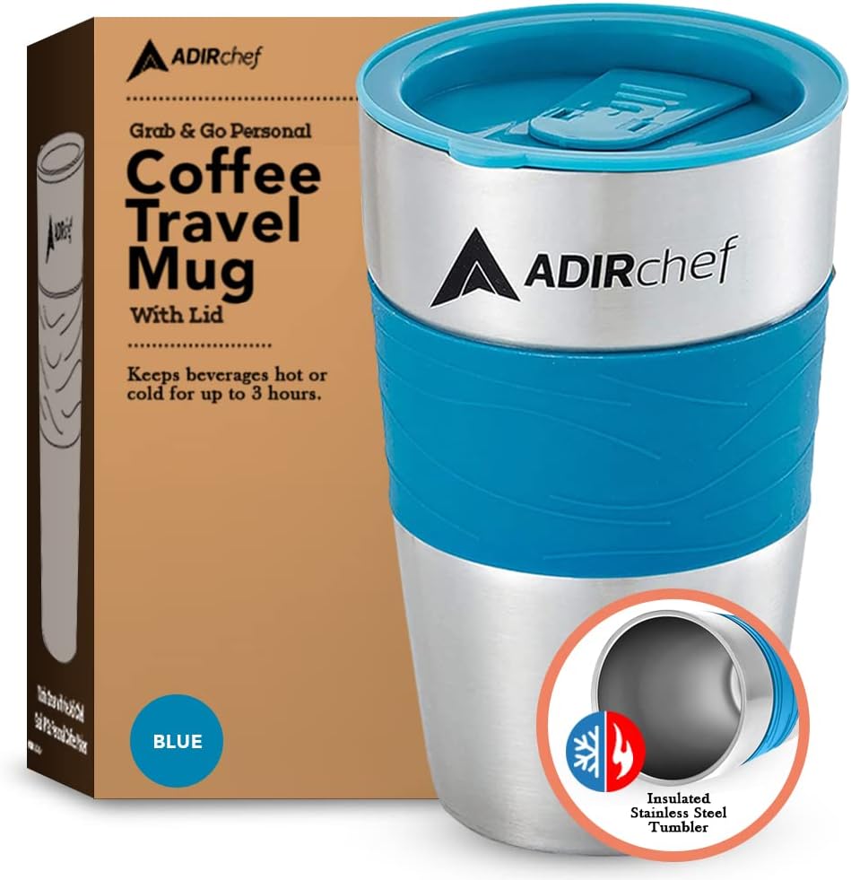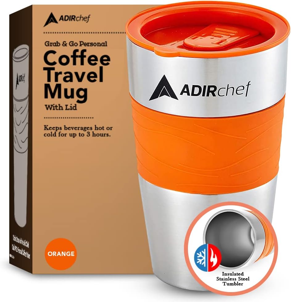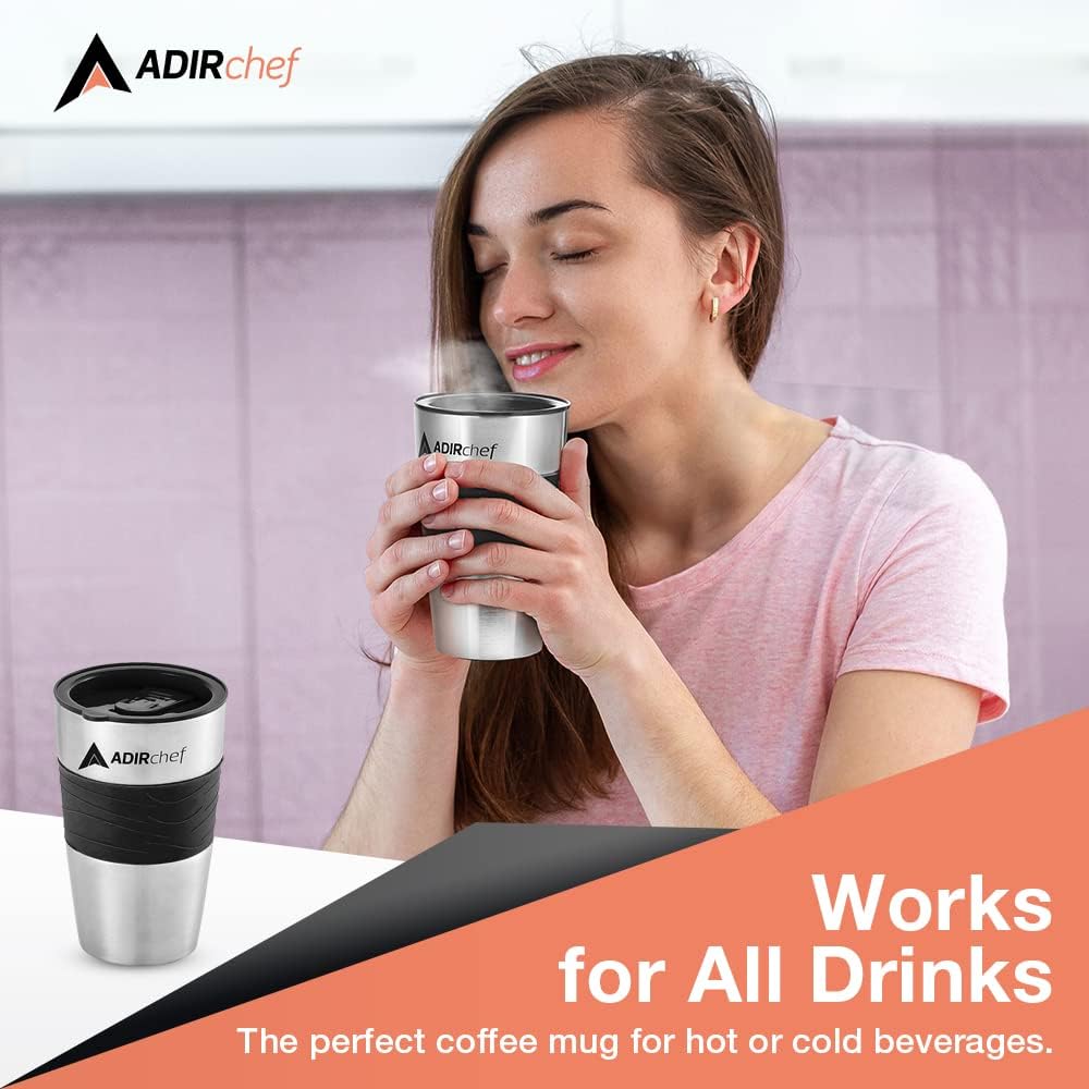 • DURABLE CONSTRUCTION. Providing long-term strength and use for years to come, the AdirChef 15-Ounce Travel Mug is expertly crafted using stainless steel construction. This material is BPA-free and safe to use.