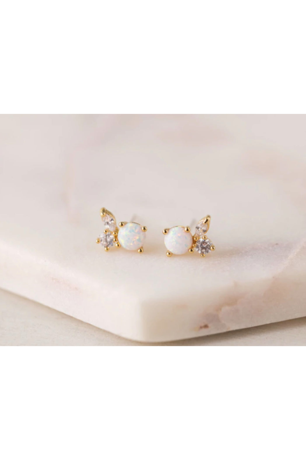 Swarovski crystals, simulated opals, and gold-plated banding marks these delicate earrings. Made to catch the light just-so.