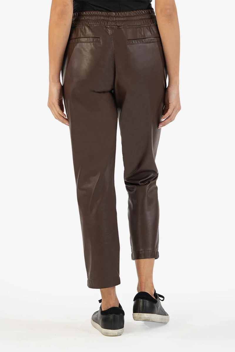 Alanna Drawstring Pleather Pant Coated for an elevated edge, these drawstring pants exude chic style with a flattering high waist and modern, ankle-grazing length. Care: Hand Wash, Line Dry Fabric: 100% PU, 100% POLYESTER Size & Fit: Inseam: 27", Leg Opening: 13", Rise: 10 1/2", Silhouette: Pant SKU: KB42401-CHCLT