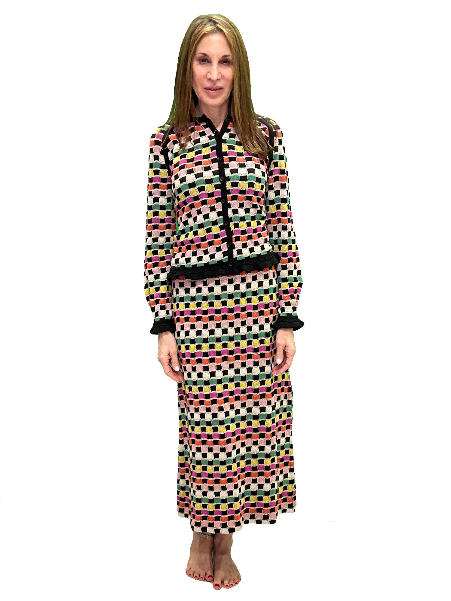 •LOOK: New from Aldo Martins is a lightweight cardigan in a summer palette of bright and happy colors. The fit is easy with a slight ruffle at hem and at the end of each sleeve. Can be worn closed on its own or layer with a fun fashion color tee underneath. Leave some of the bottom buttons open to let the layers poke out. This is a piece to have fun with. Wear to work or when you are just hanging with friends. Skirts, pants or anything denim. This cardi can go the distance.