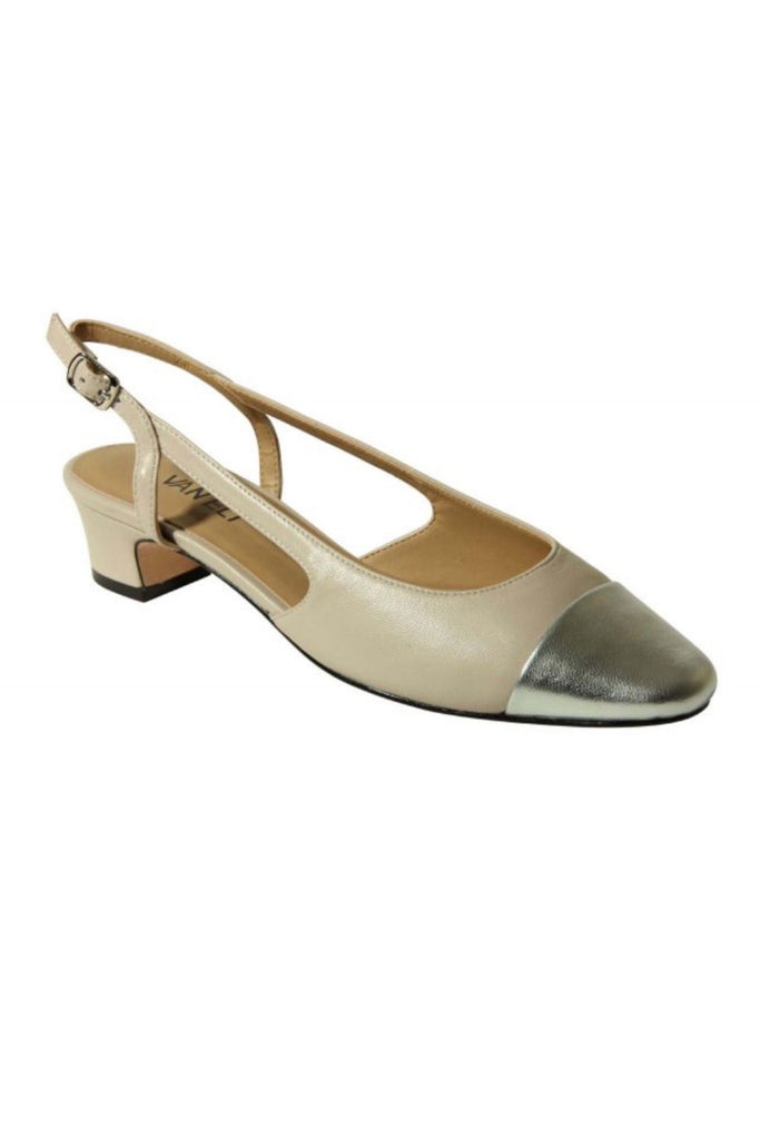 An Instagram favorite! The Aliz quickly evolved to become a VANELi classic thanks to its timeless appeal and comfort characteristics. This slingback style has an adjustable buckle and cap-toe detail. Buffed leather sole with a rubber insert for added traction.