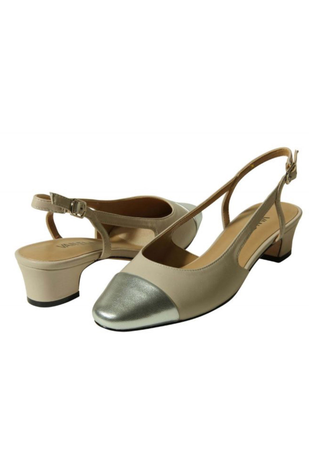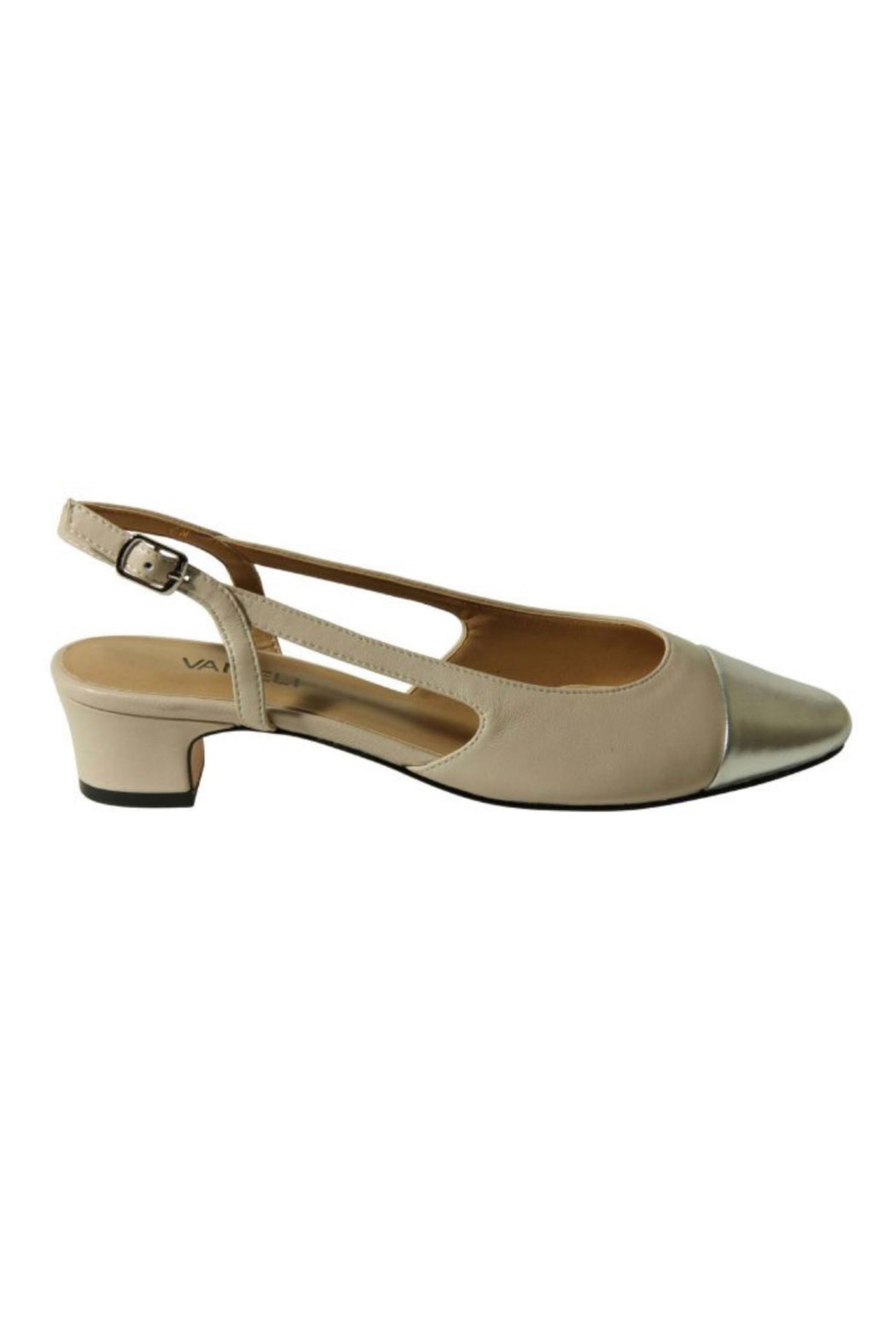 An Instagram favorite! The Aliz quickly evolved to become a VANELi classic thanks to its timeless appeal and comfort characteristics. This slingback style has an adjustable buckle and cap-toe detail. Buffed leather sole with a rubber insert for added traction.