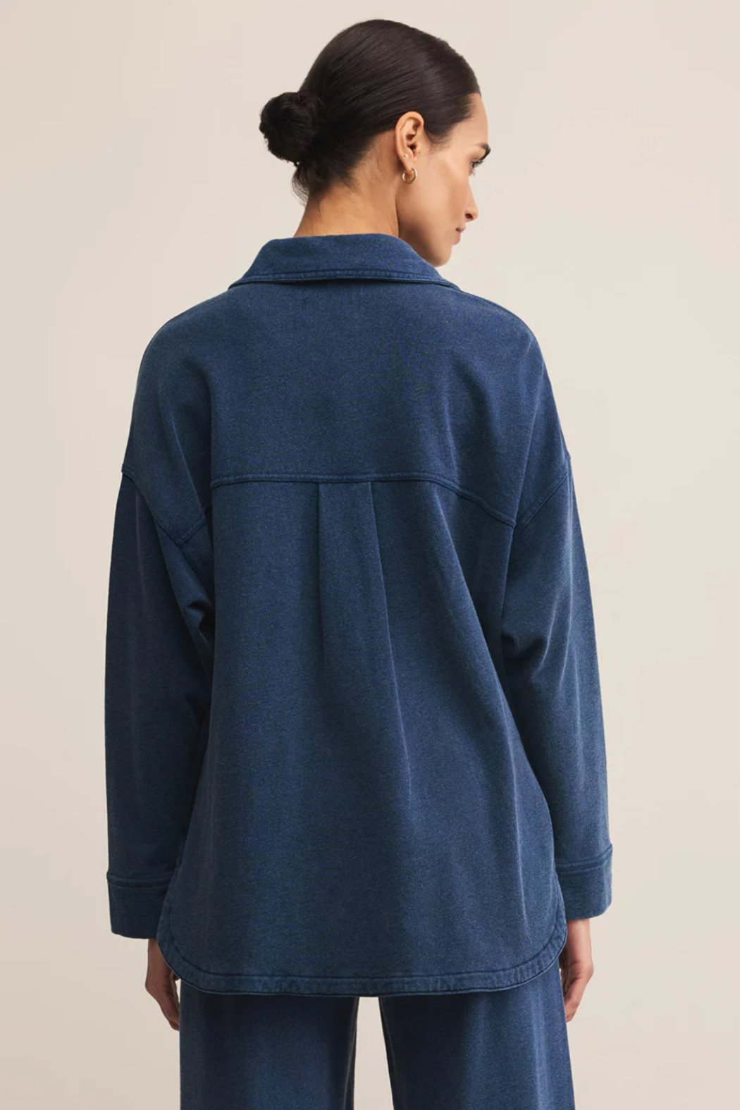 Your new go-to layer just got an upgrade. This relaxed-fit All Day Knit Denim Jacket is crafted from soft knit denim French terry, giving you that perfectly lived-in feel with a cool, structured look. Designed with a collared neckline, button-front closure, and oversized patch pockets, it's the ultimate mix of comfort and effortless style. Perfect for everyday errands, weekend getaways, or casual coffee runs.