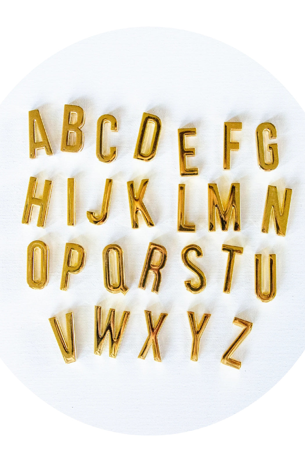 Crafted from zinc alloy with a yellow gold finish, each letter stands 1 inch tall, with width varying by design. Perfect for adding initials, spelling out a name, or mixing and matching to suit your mood, it’s a subtle yet statement-making accessory you’ll love styling again and again.