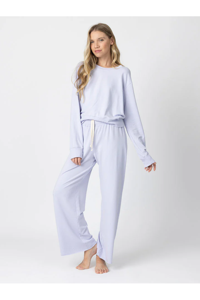 ALYN – PJ Harlow’s New Super Soft French Terry Sweatpants. High Waisted With An Adjustable Drawcord, And Raw Edge Bottom.