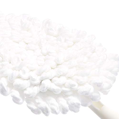 - Mop-like microfiber head naturally attracts dust particles, effectively trapping them