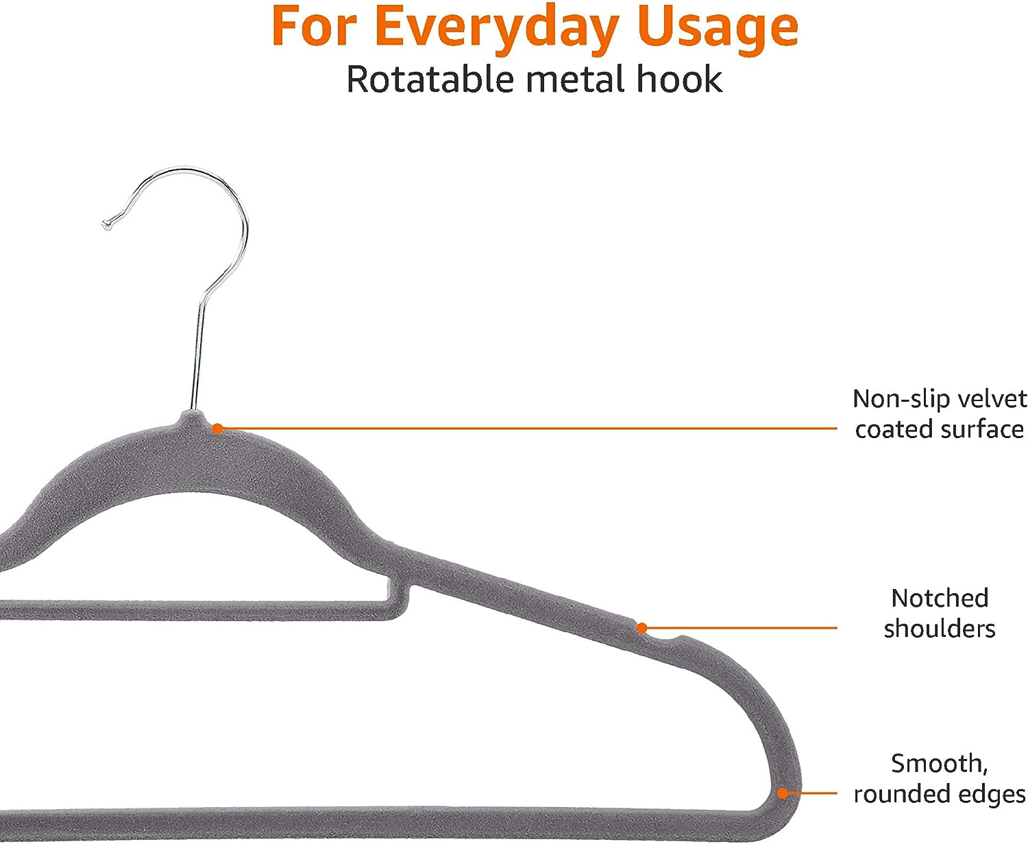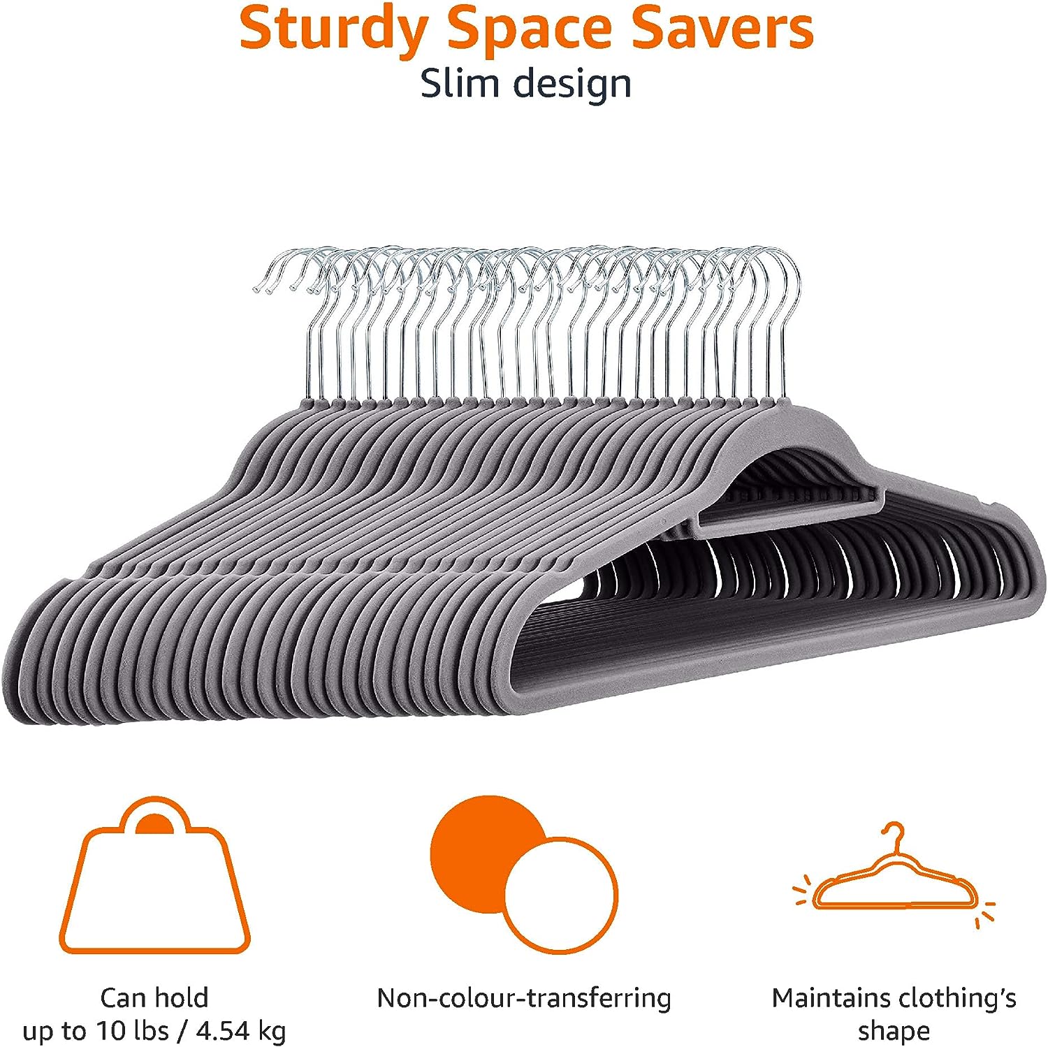 Amazon Basics Velvet Suit Hangers with Tie Hanger, Dark Grey (30-Pack)