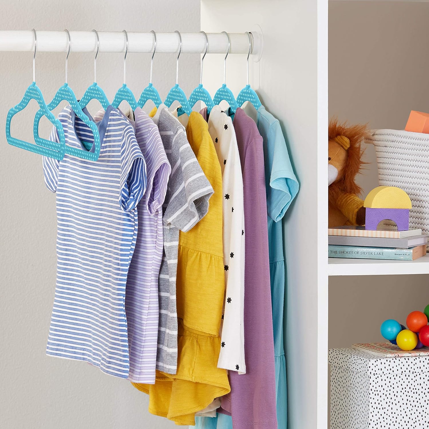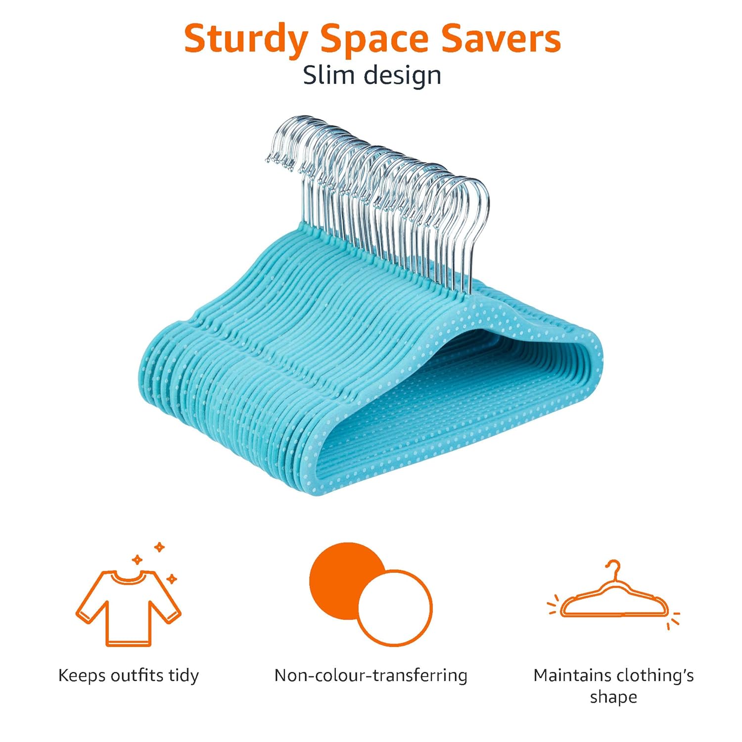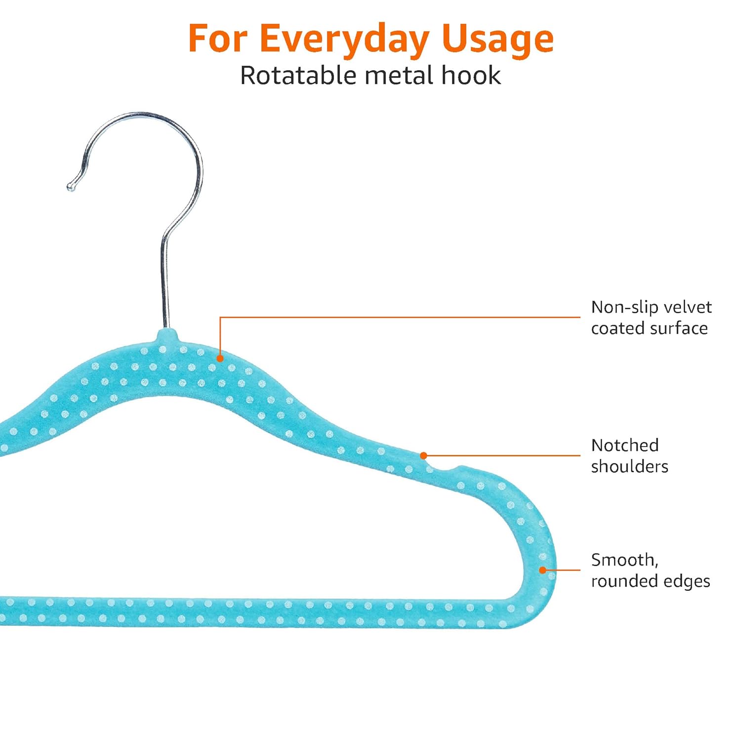 AmazonBasics Kids Velvet Hangers - 30-Pack, Blue Polka Dot(Plastic,30)