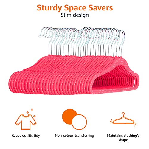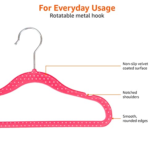 AmazonBasics Kids Velvet Non-Slip Clothes Hangers, 30-Pack, Pink Polka Dot
