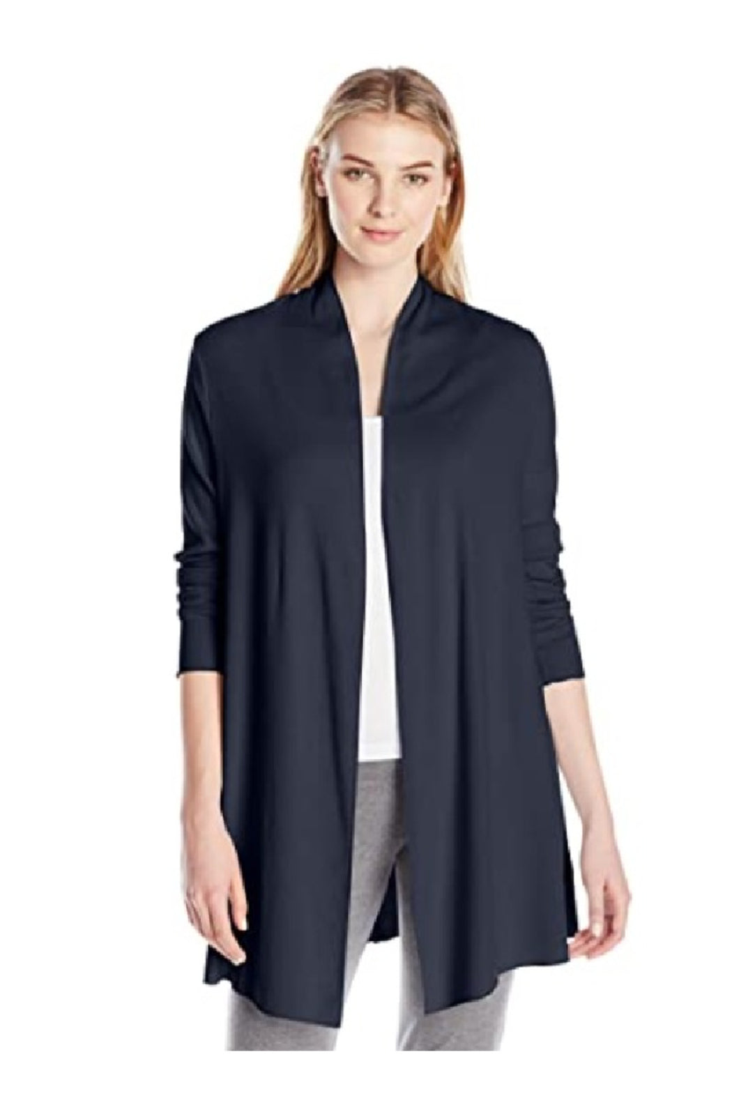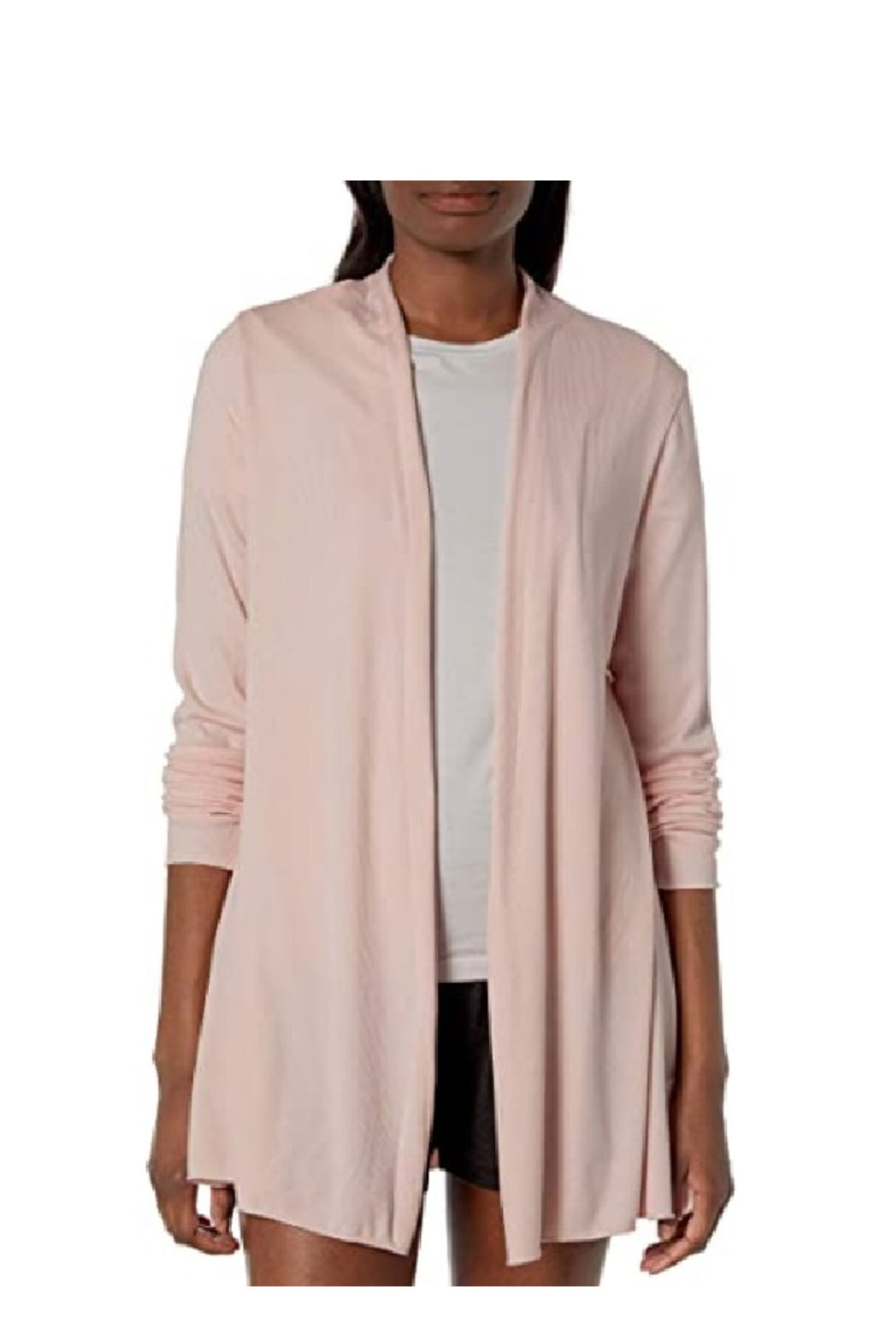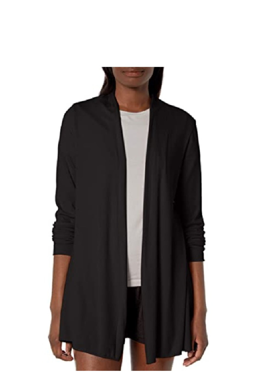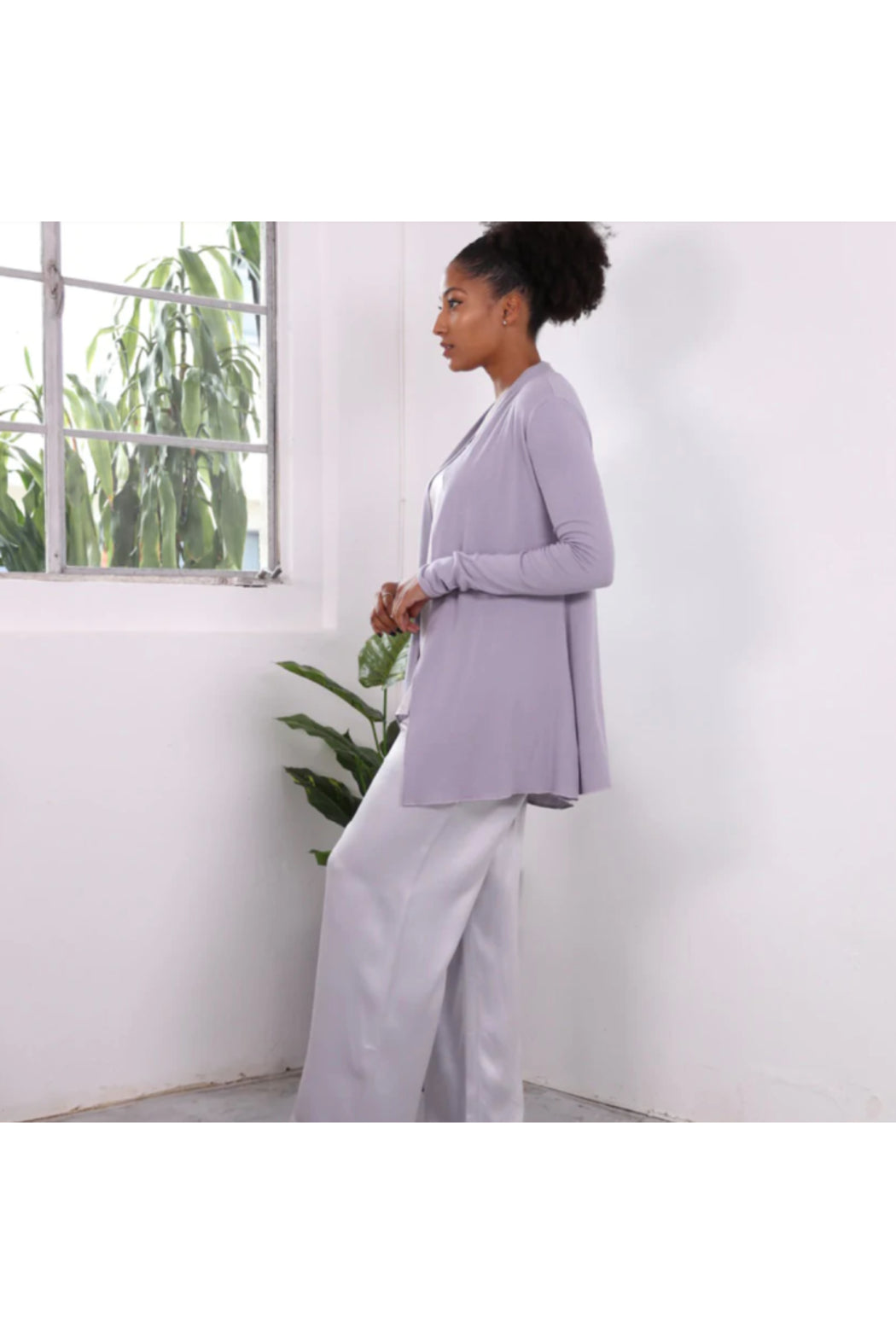 Our 2x1 rib cardigan with merrow edge is a fan favorite because of its simple, clean appearance and its super soft feel! The extra long sleeves and mid thigh length accommodates all lounge wear elegantly. Promise-you'll be surrounded in softness!