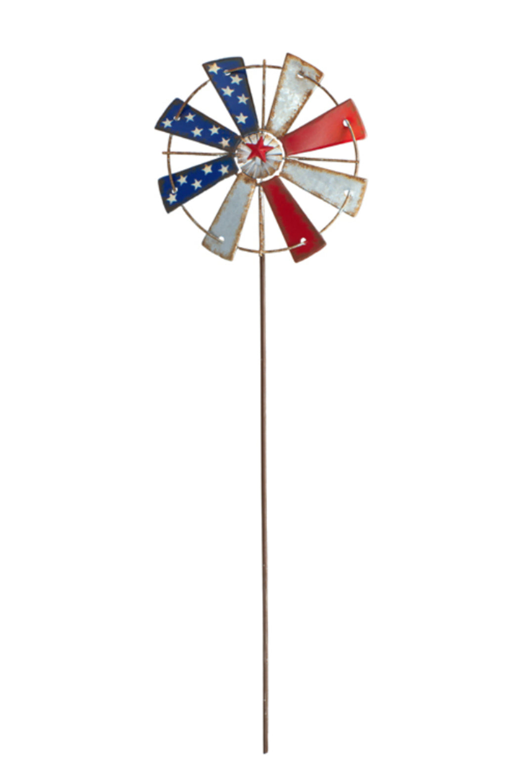 This Americana Windmill Stake is a decorative accessory for any garden. Crafted from durable materials, this 7.5 x 24 in stake adds a classic look to any outdoor area. Add a touch of classic charm to your home's exterior with this windmill stake.