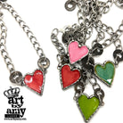 Amia is a great Valentines necklaces made with our giant flattened curb chain in a brushed antique silver, the chain is approximately 1 inch wide, 17 inches long, with a 3 inch extender for a 20 inch total. With the center piece, you have a choice between pink, red, turquoise, and green 2" pottery hearts. Guaranteed to steal your heart when you wear them!!!