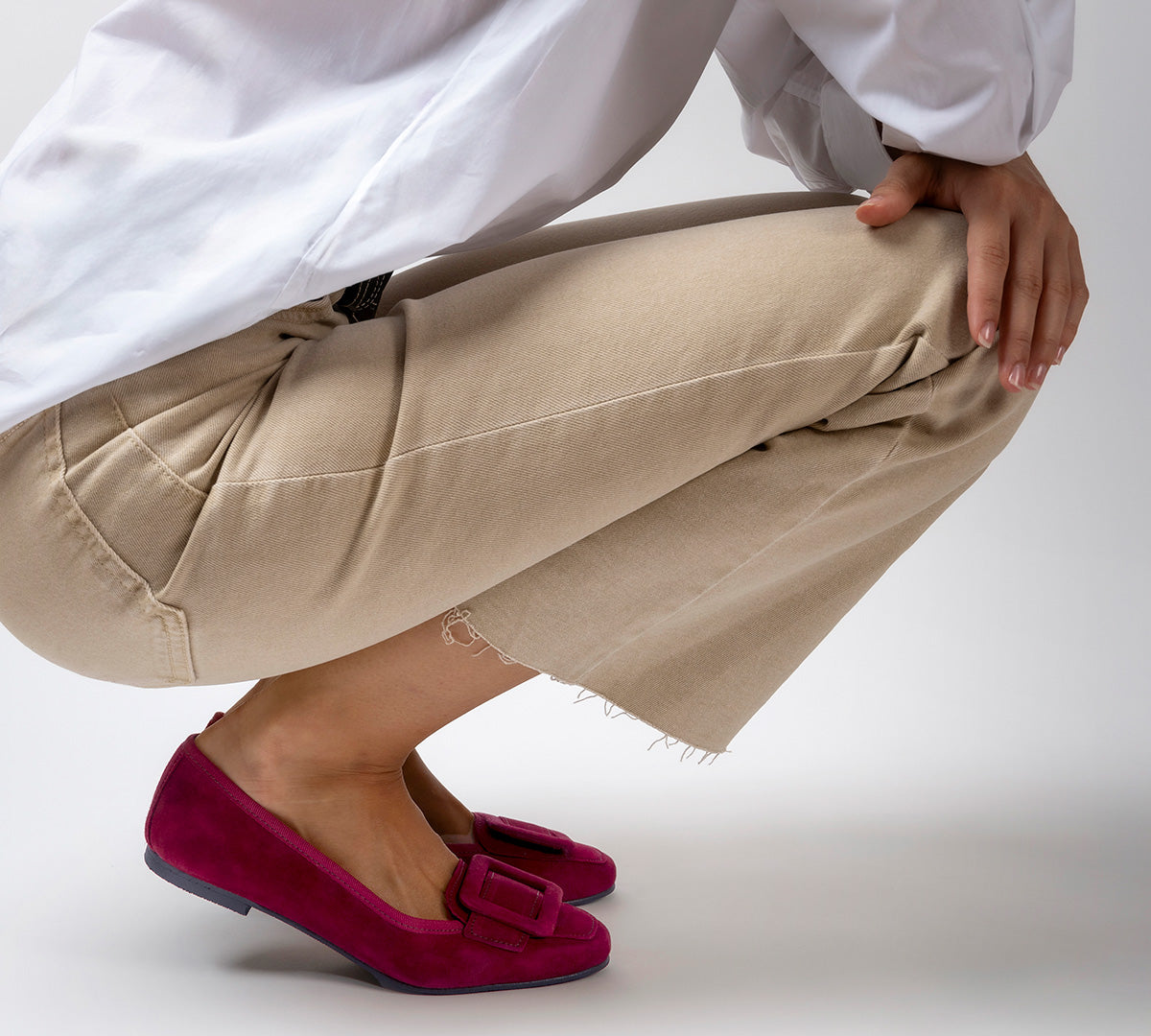 The soft suede combined with the leather covered buckle adds a sophisticated and chic touch to this flat. They truly are a must-have, a timeless wardrobe staple.