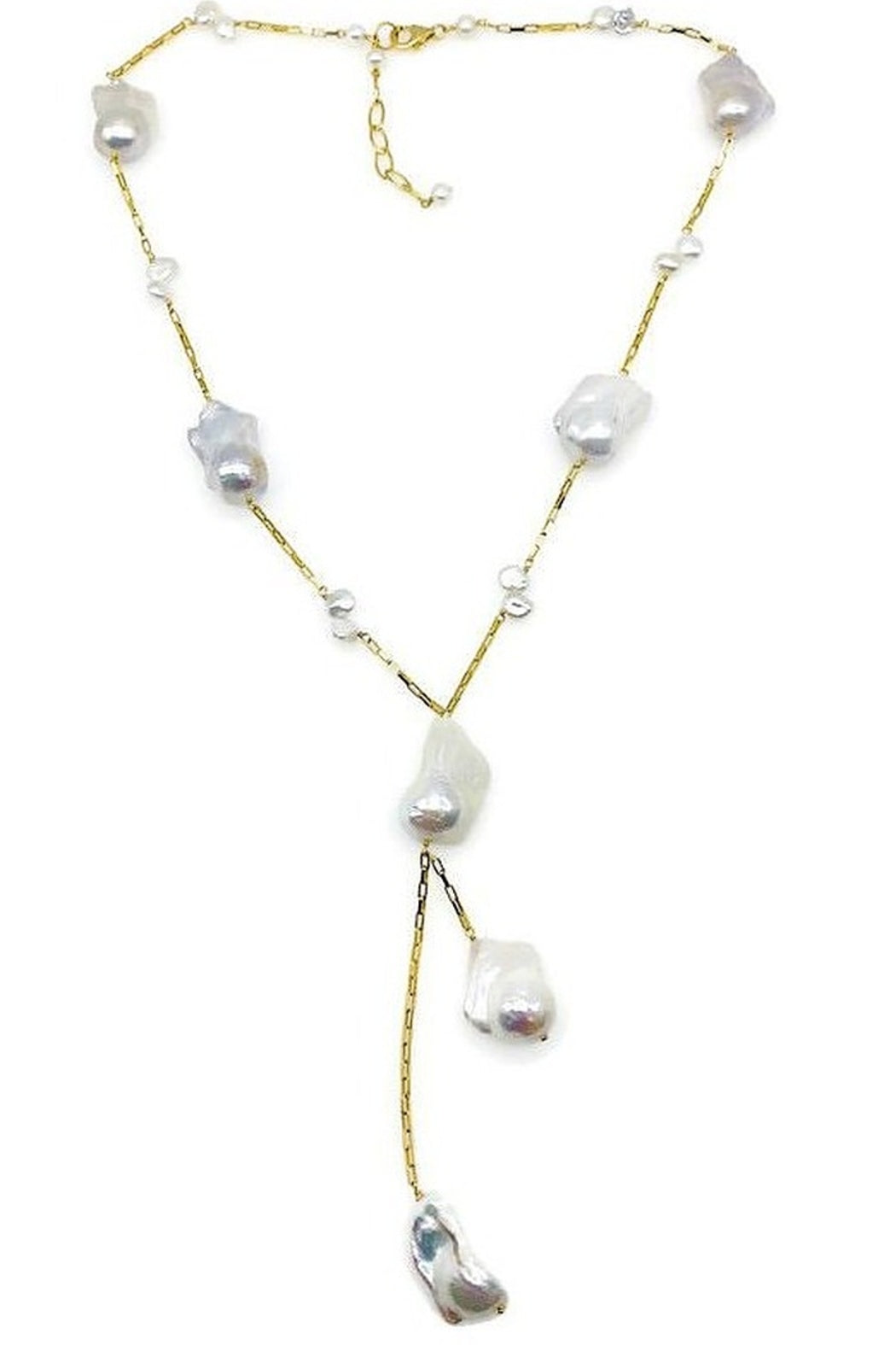 925 Sterling Silver with 18k Gold overlay. Baroque Pearl Necklace