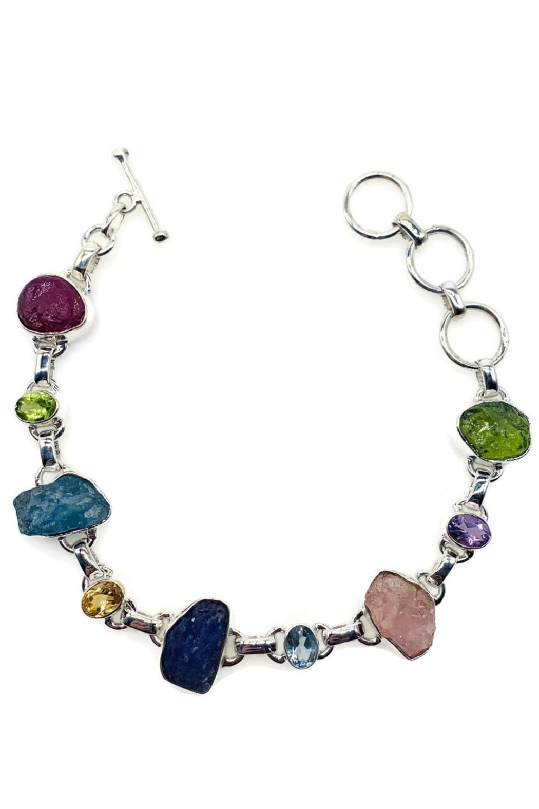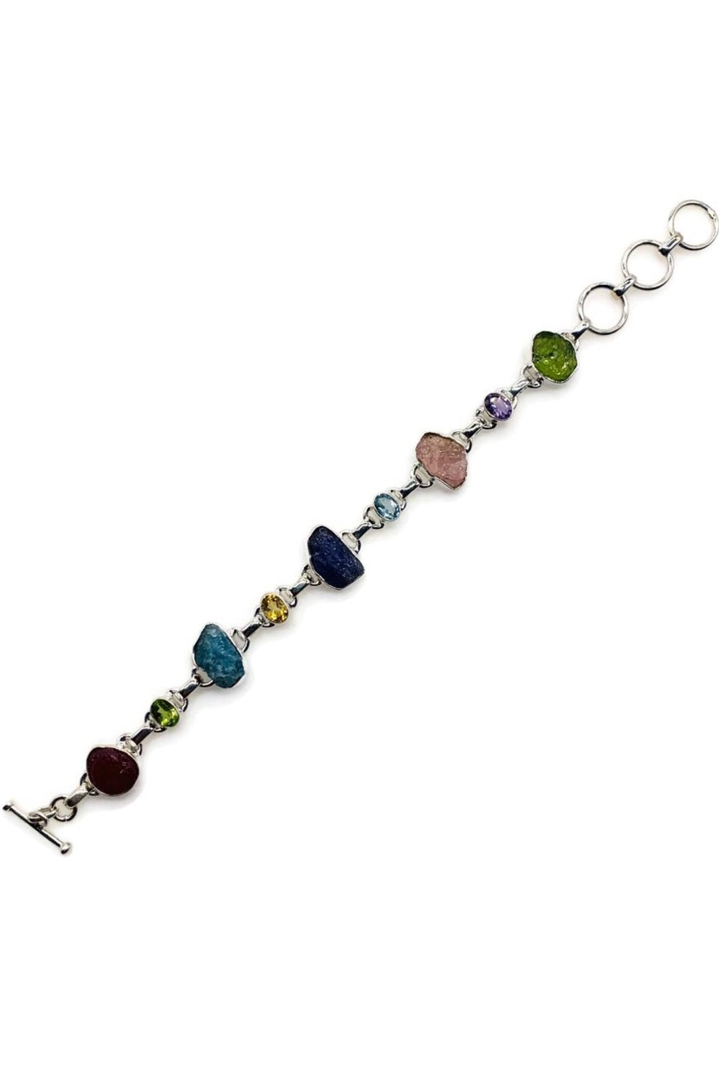 Garnet with Faceted Citrine, Blue Topaz, Peridot