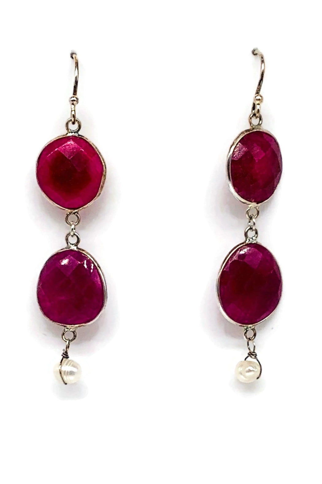 Natural Uncut Ruby drops and Fresh Water Pearl.