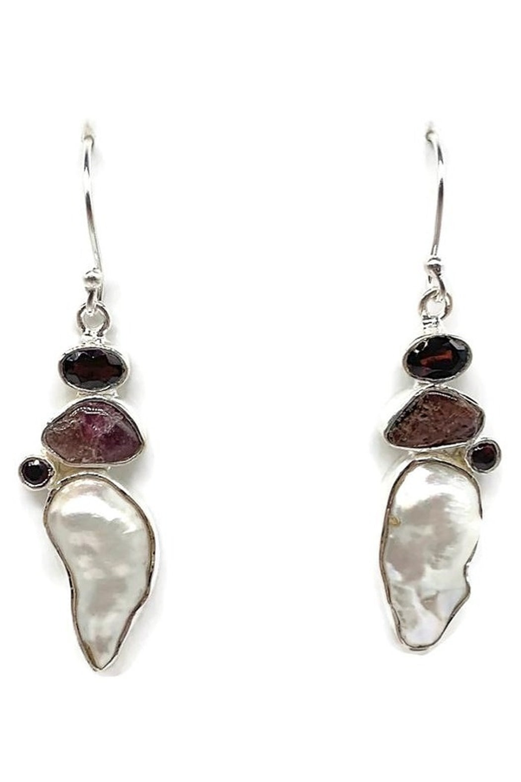 Natural Uncut and Faceted Garnet with Baroque Pearl