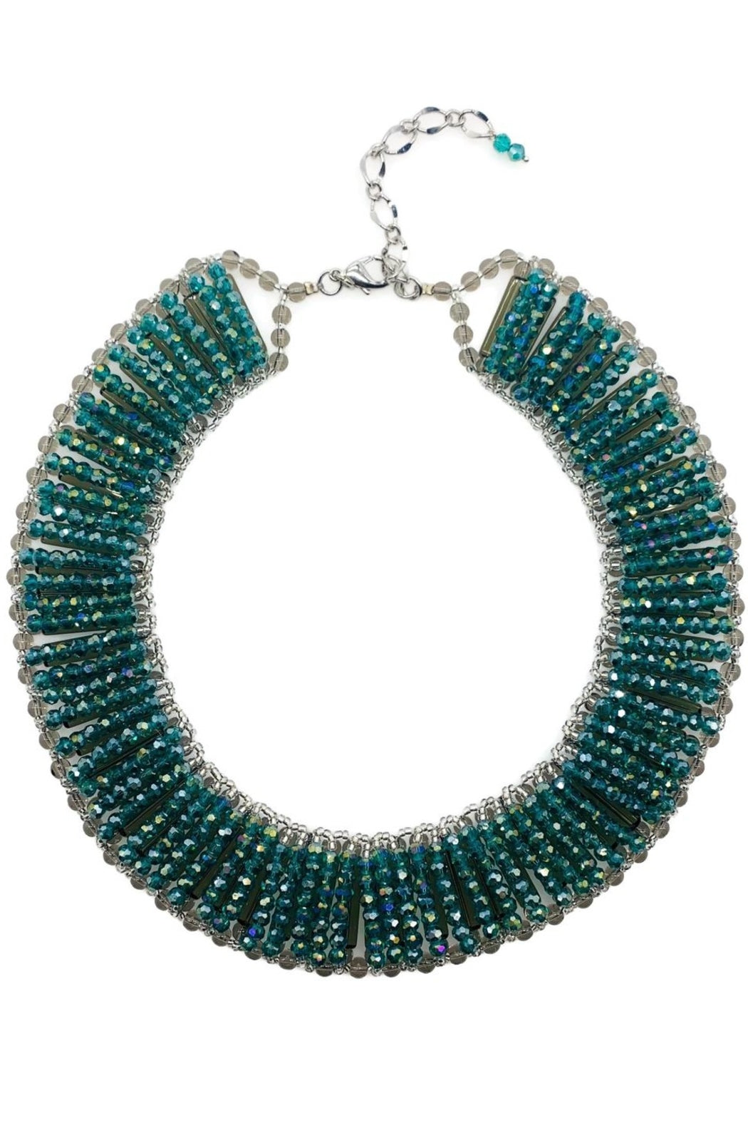Collar Made of Smokey Quartz with Green Swarovski Crystals