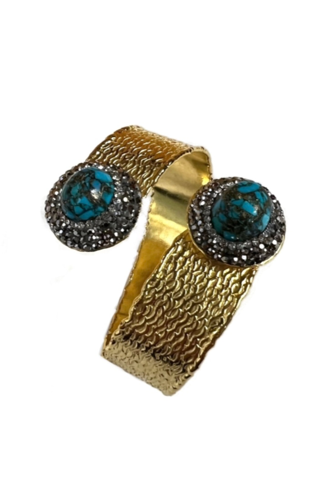 Adjustable Turquoise Bracelet. decorated with Swarovski Crystals.