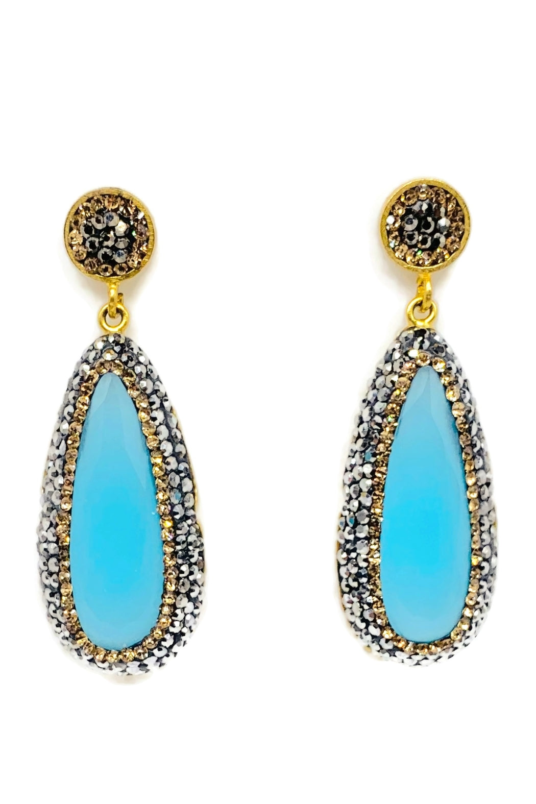 Faceted Aqua Cats-Eye with Golden Swarovski Crystals and Hematite