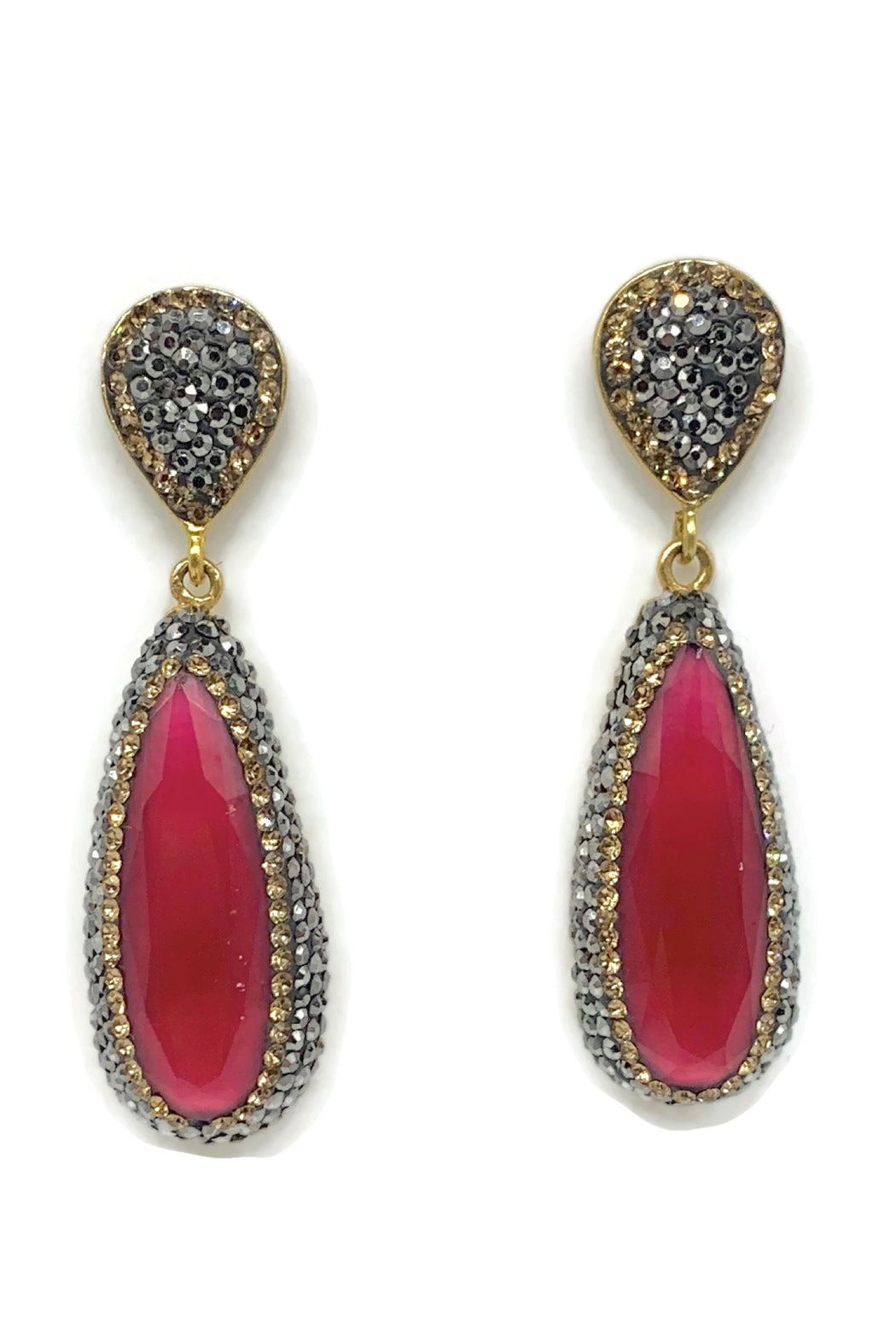 Red Cats-Eye with Golden Swarovski Crystals and Hematite