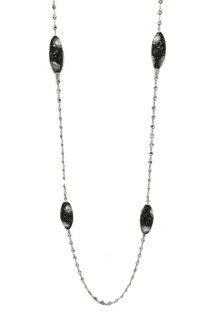Fresh Water Pearls Long Necklace decorated with Swarovski Crystals, Hematite and CZ.