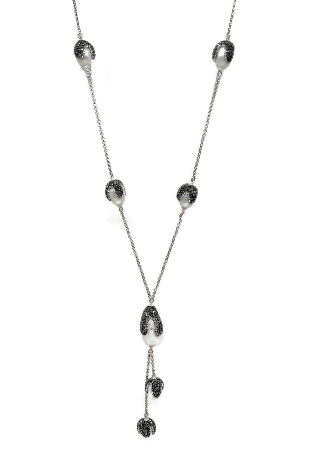 Fresh Water Pearls Necklace decorated with Swarovski Crystals, Hematite.