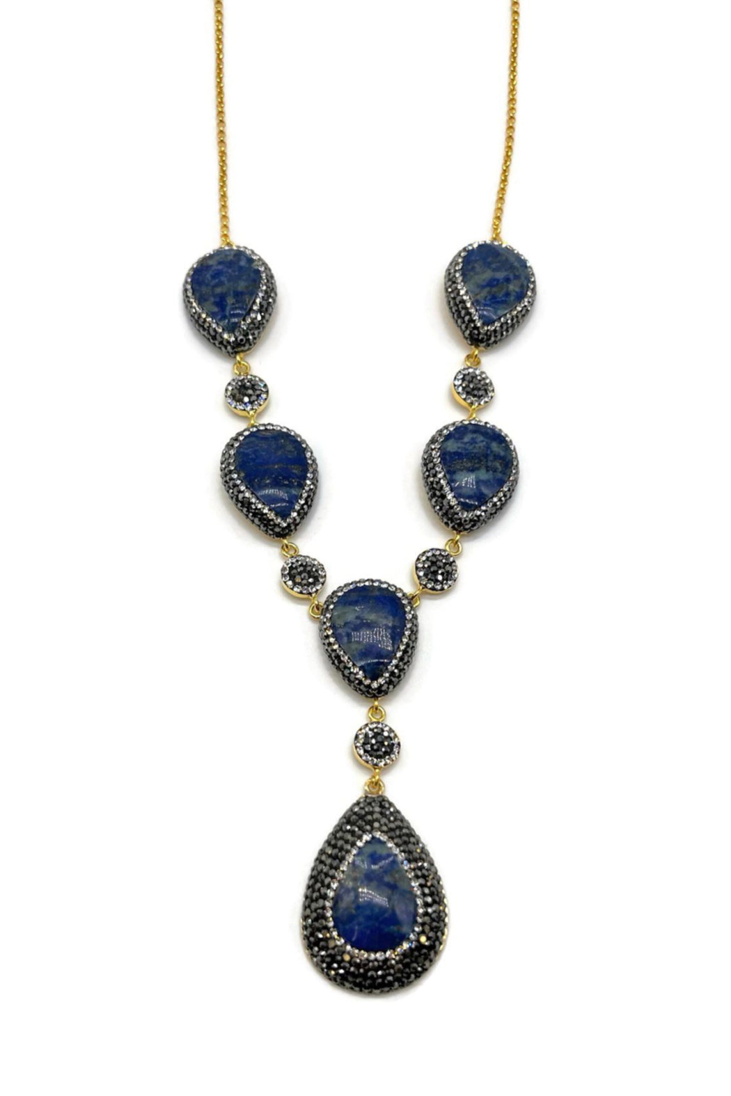 Lapis Lazuli Necklace decorated with Swarovski Crystals and Hematite