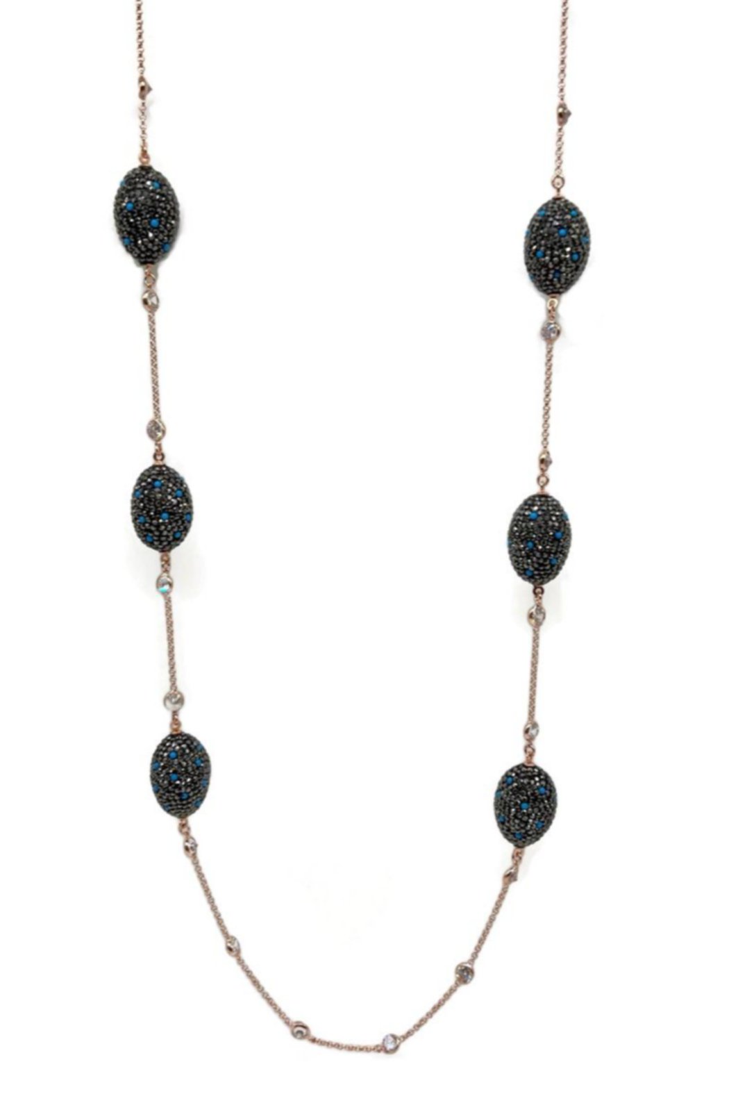 Hematite Long Necklace decorated with small turquoise beads and CZ.