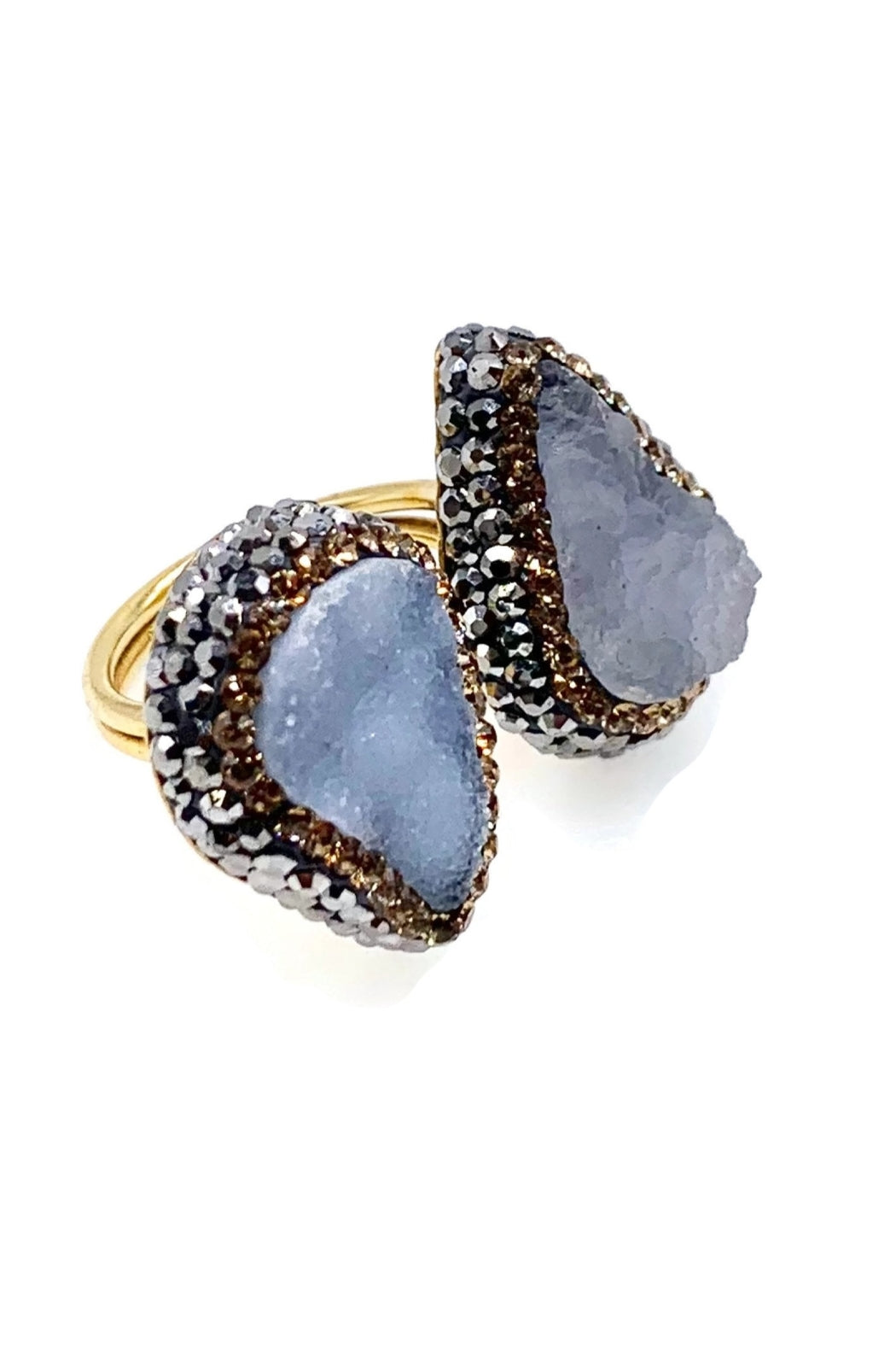 Double Drop Natural Druzy, Swarosvki Crystals and Hematite