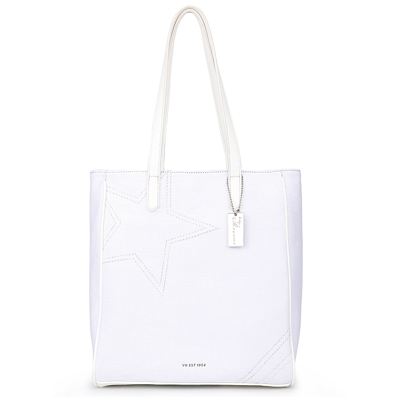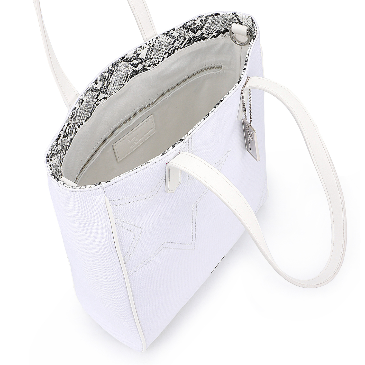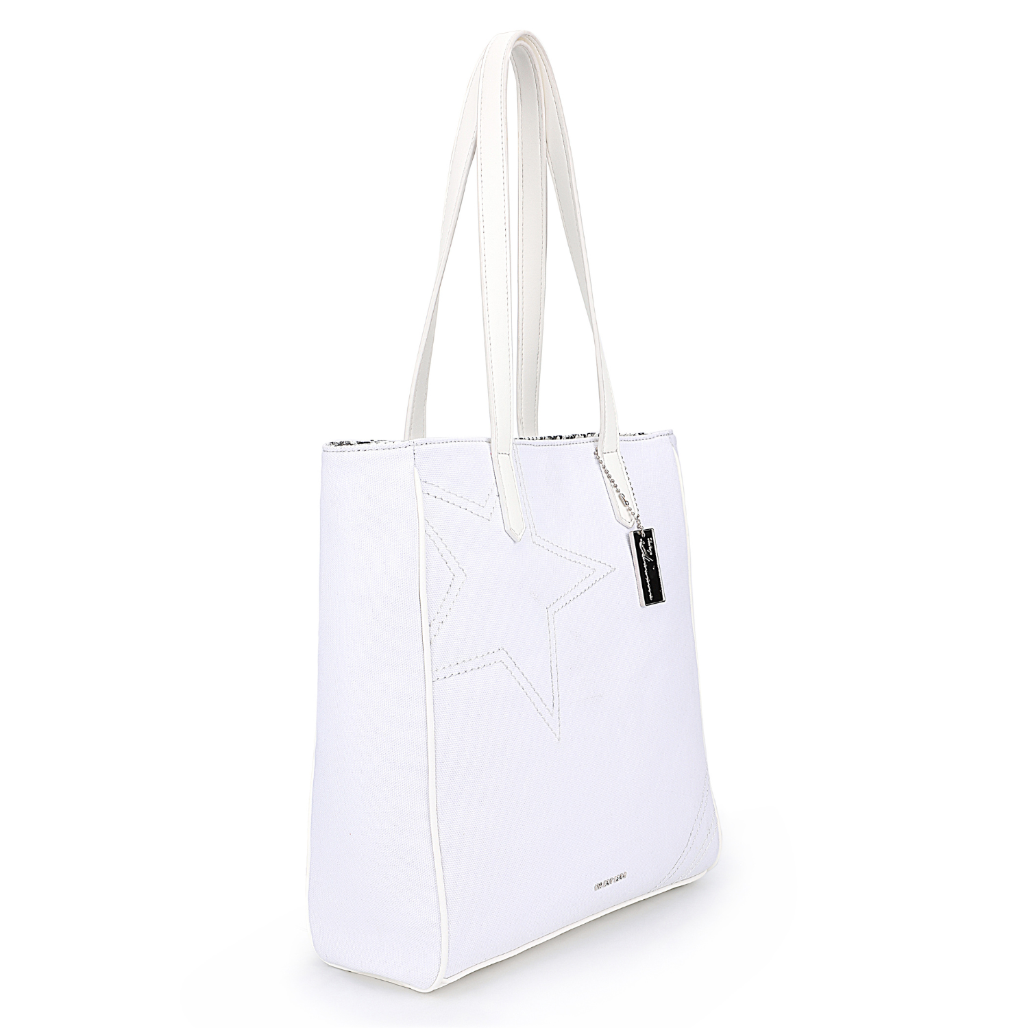 - Tote style with contrast top handle