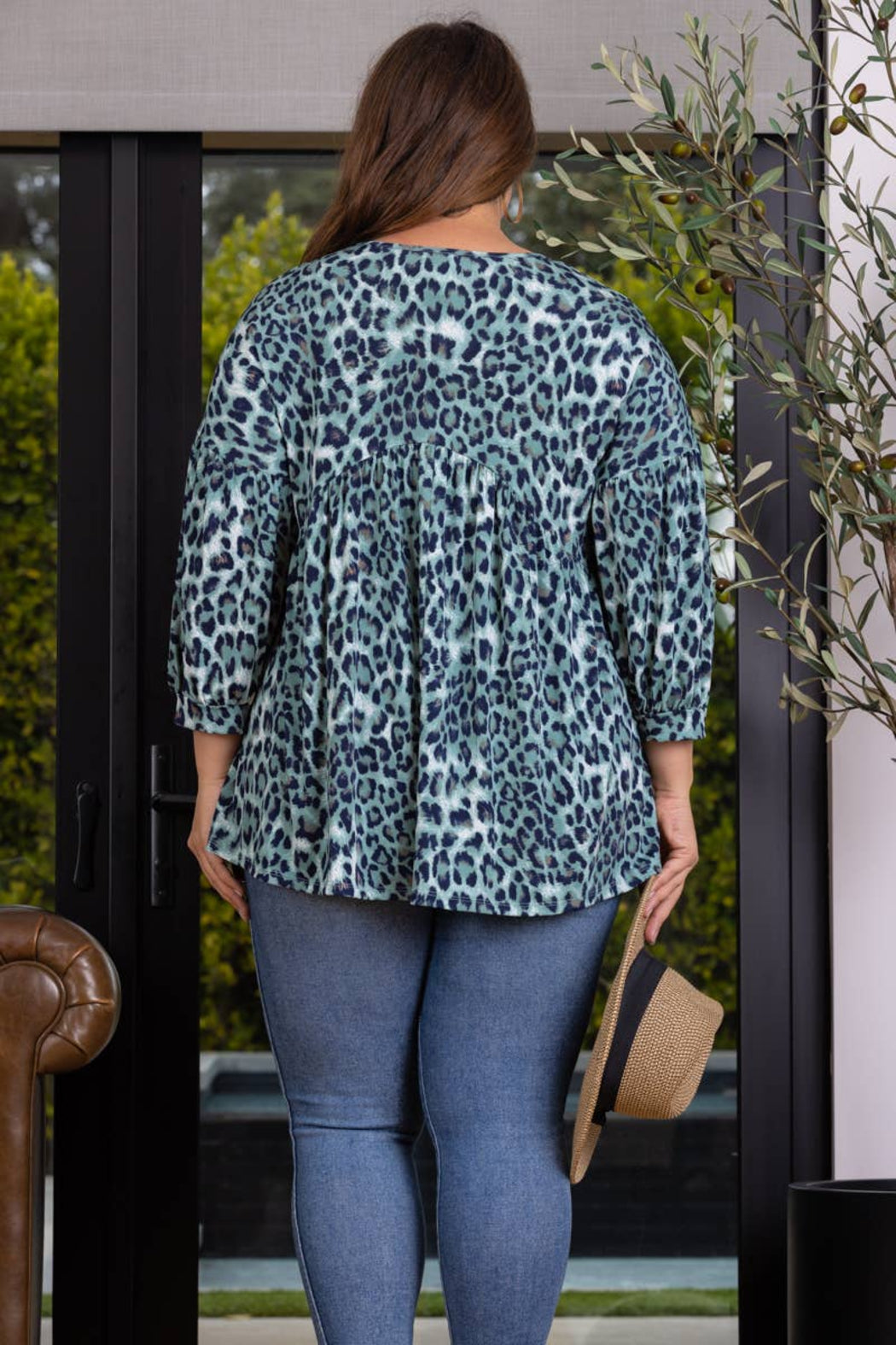 Teal V-neck, 3/4 sleeves, baby dolly, fresh top, comfy, loose fit, light weight.