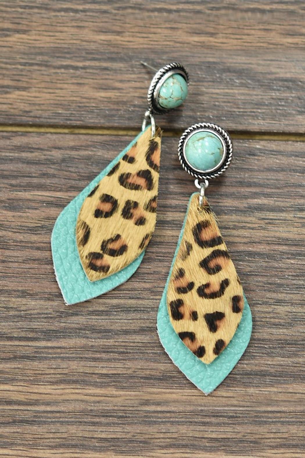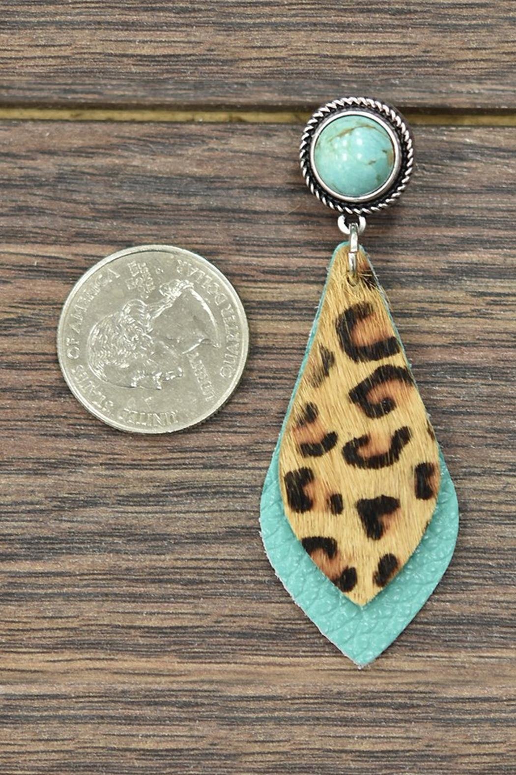 Animal-Print-Leather Natural-Turqoise Post-Earrings
