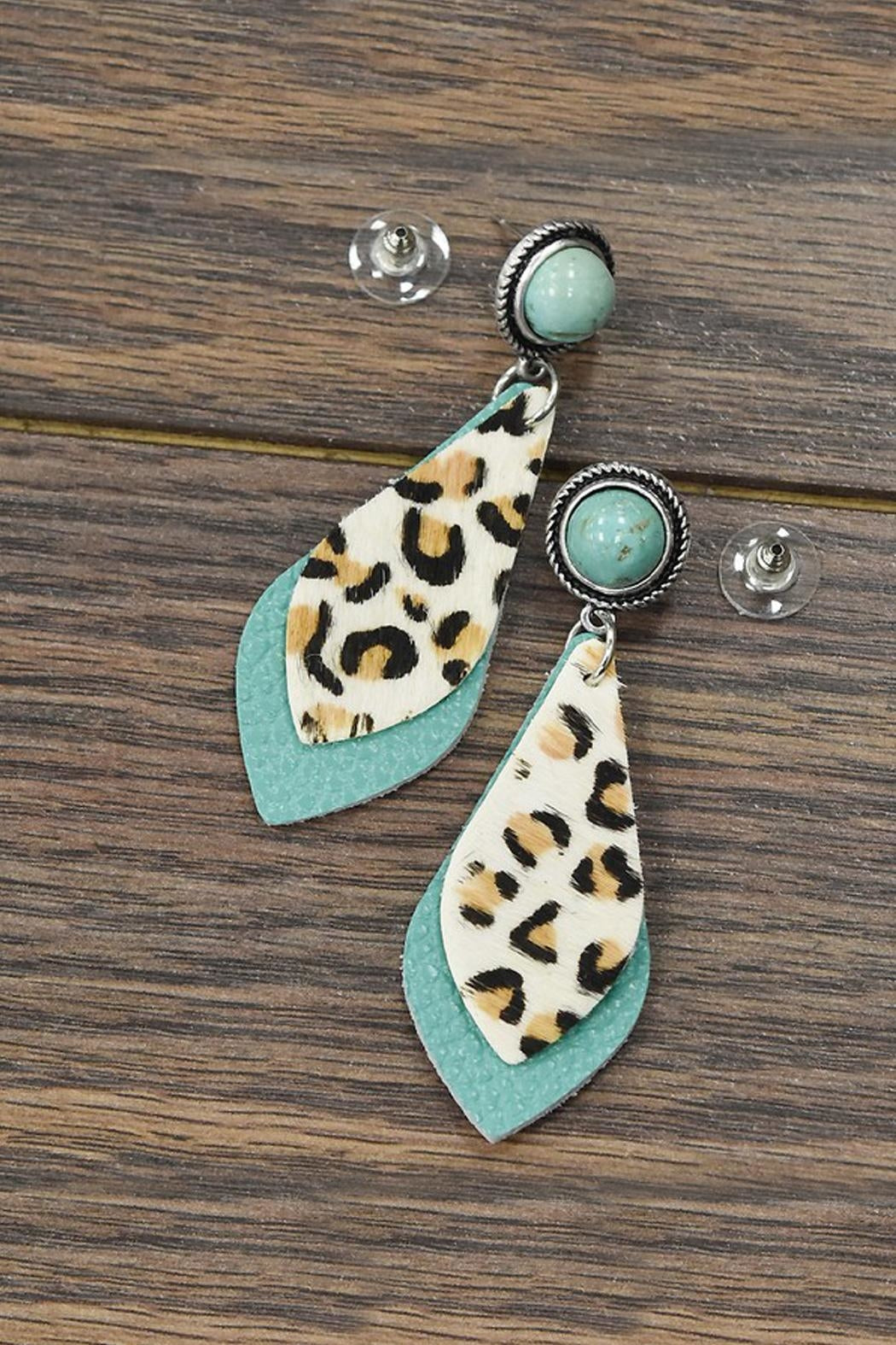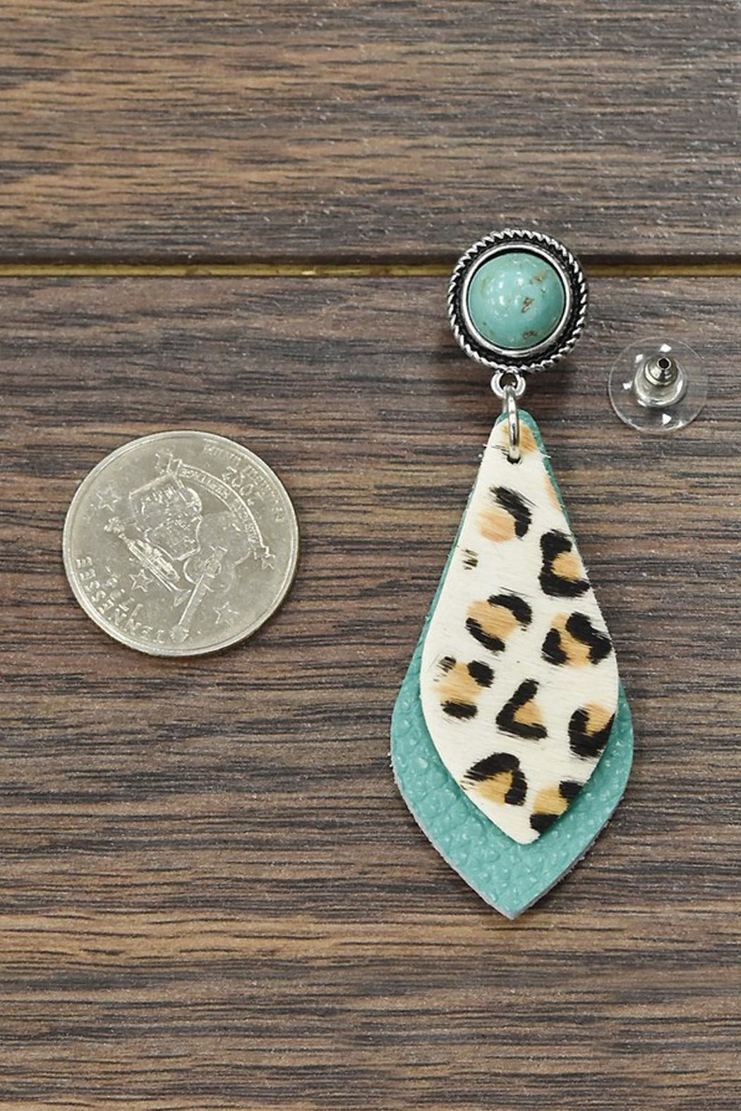 Animal Print Leather Natural Turqoise Post Earrings