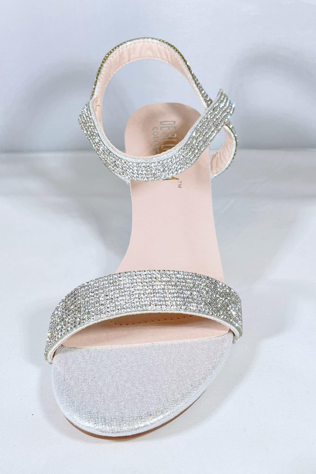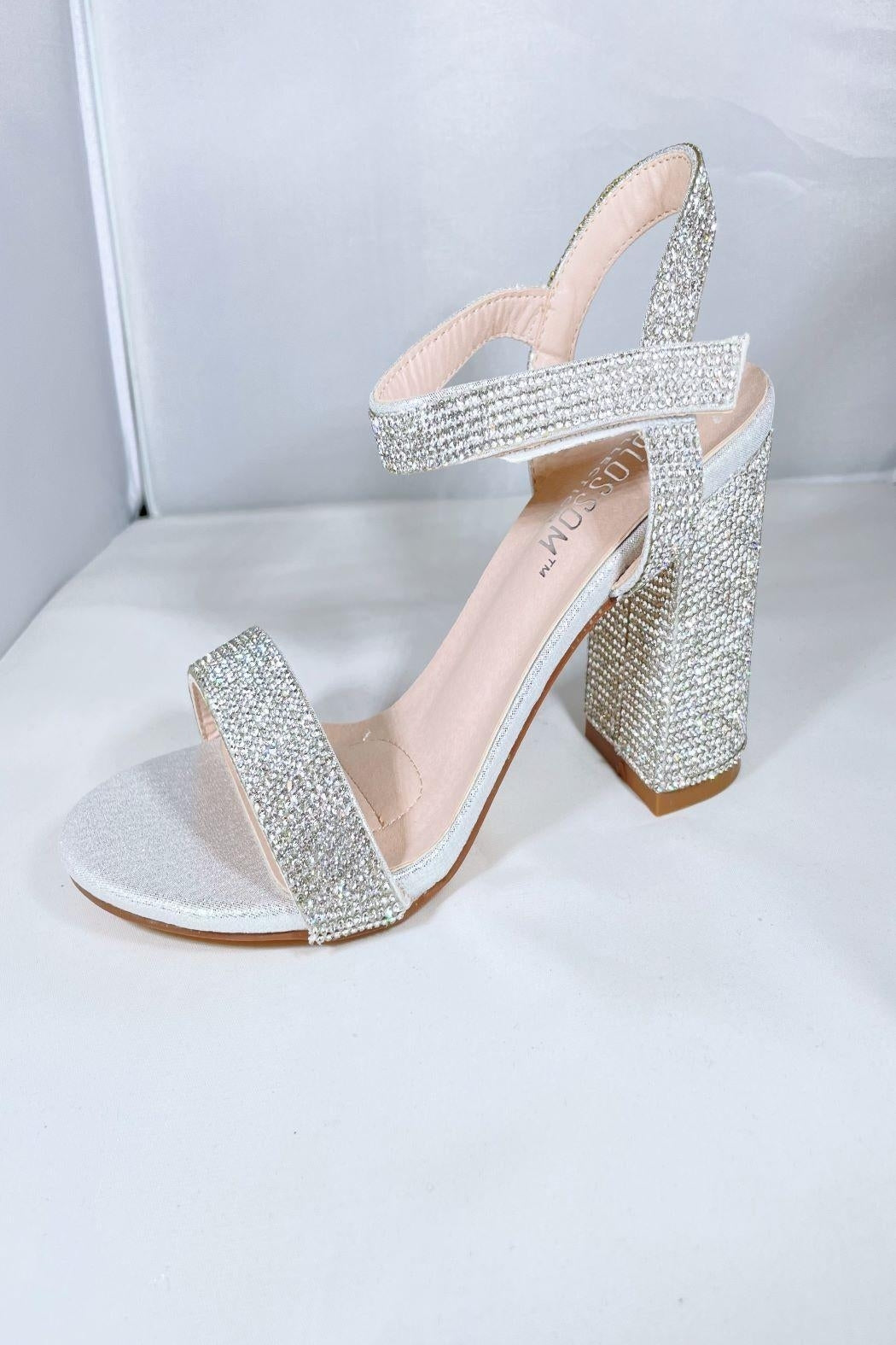 These anna rhinestone block heels are perfect for every occasion! They feature a 3.2" heel with extra cushioning in the bottom for all day comfort. They have velcro on the ankle strap to make them easy to put on and take off. We have them in the silver and white color, there isn't much difference between the 2 colors so if we are sold out of your size in one color you could easily do the other color!