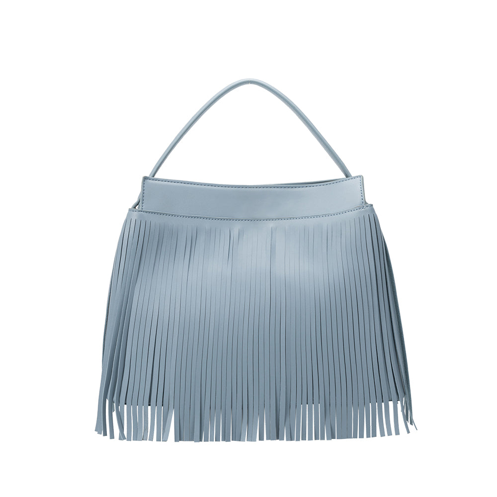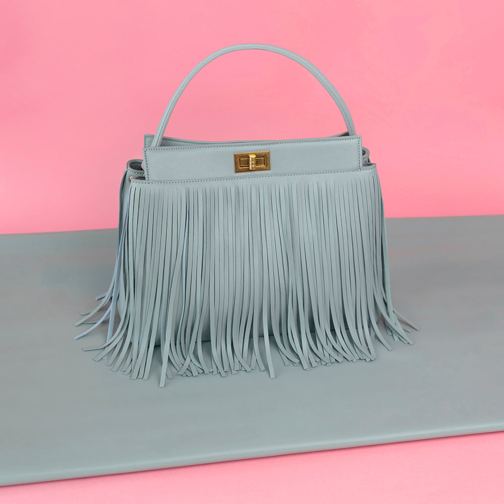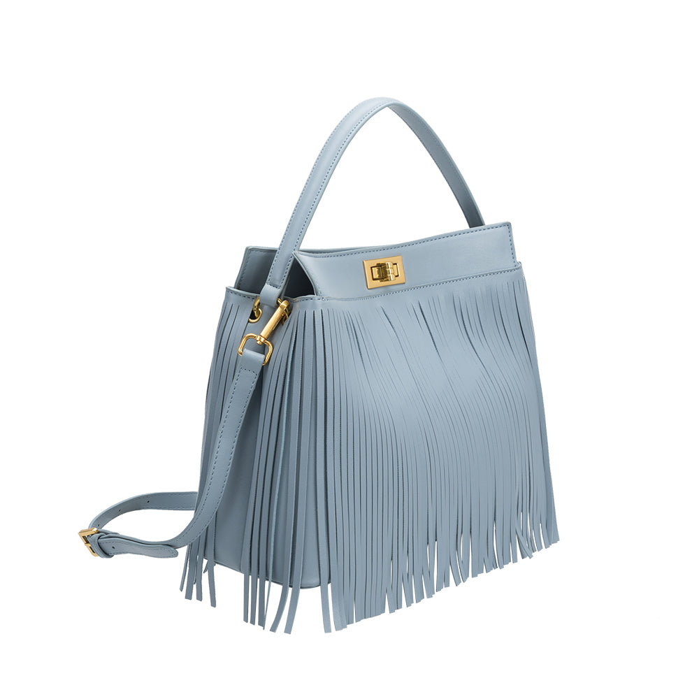 Anne is a structured top handle bag crafted from recycled vegan leather and lined with non-toxic cotton canvas lining. Beautifully designed with fringe details throughout, this handbag can also be used as a crossbody by attaching the adjustable crossbody strap.