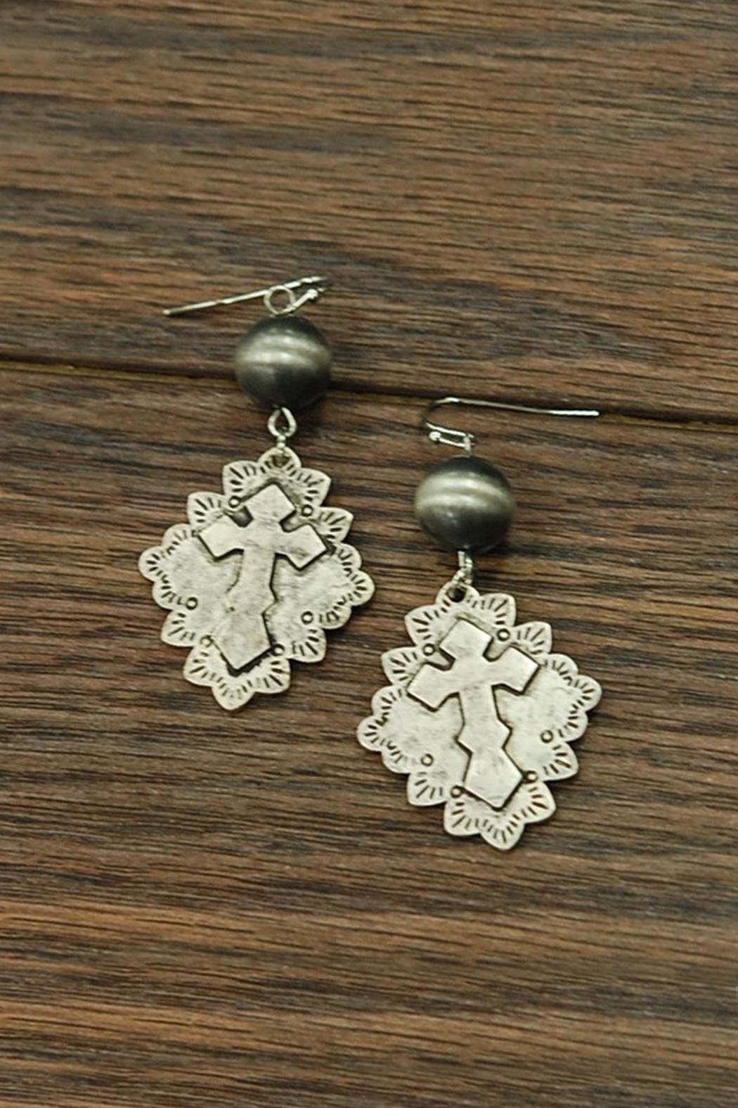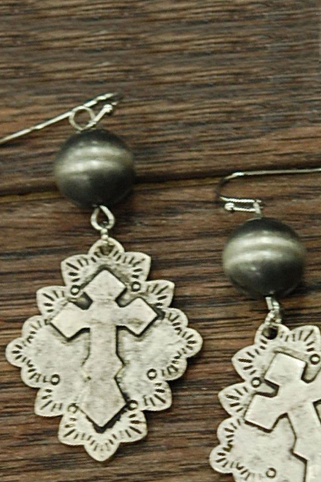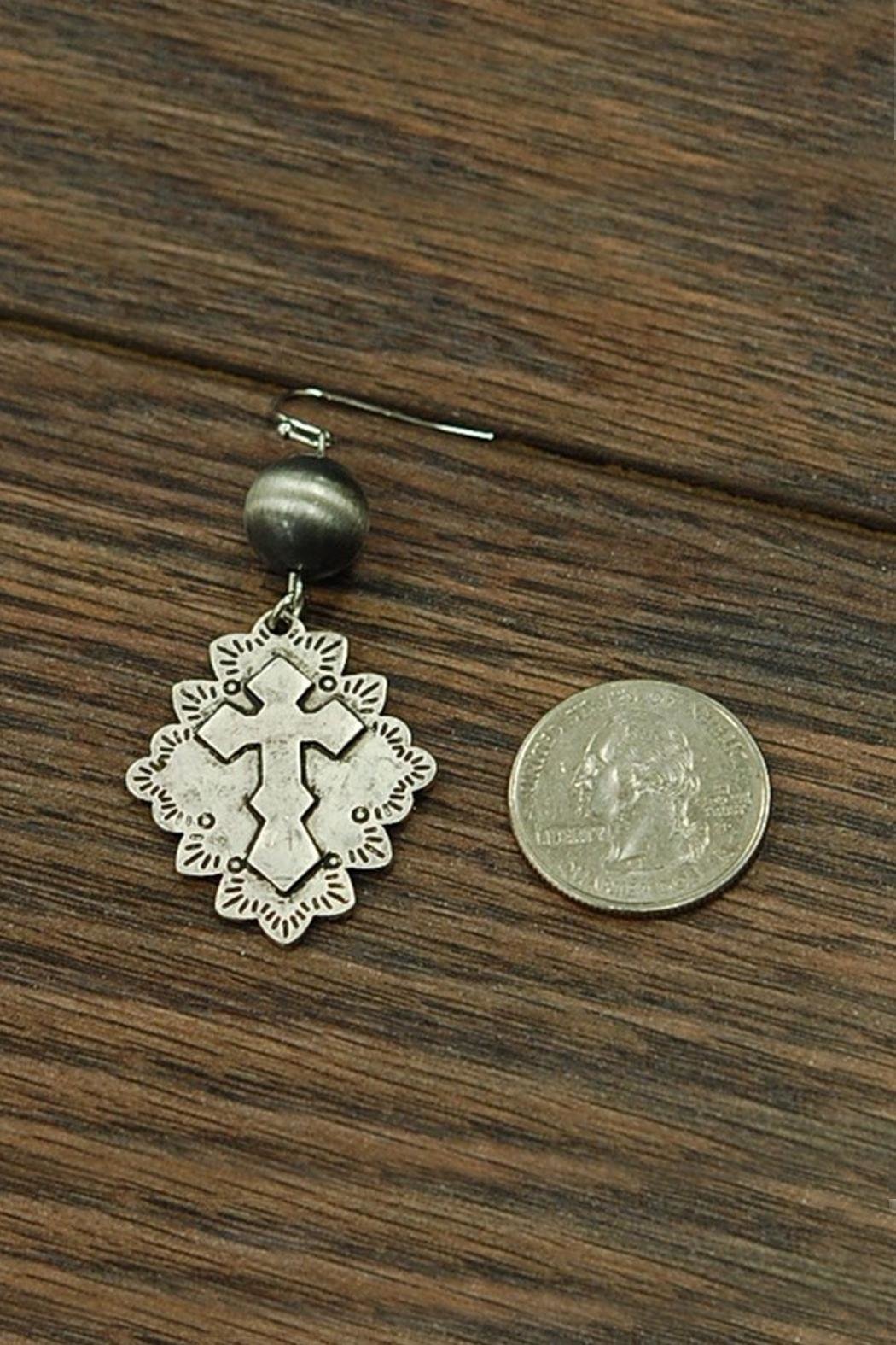 Antique-Silver-Cross Earrings With-Western-Pearl