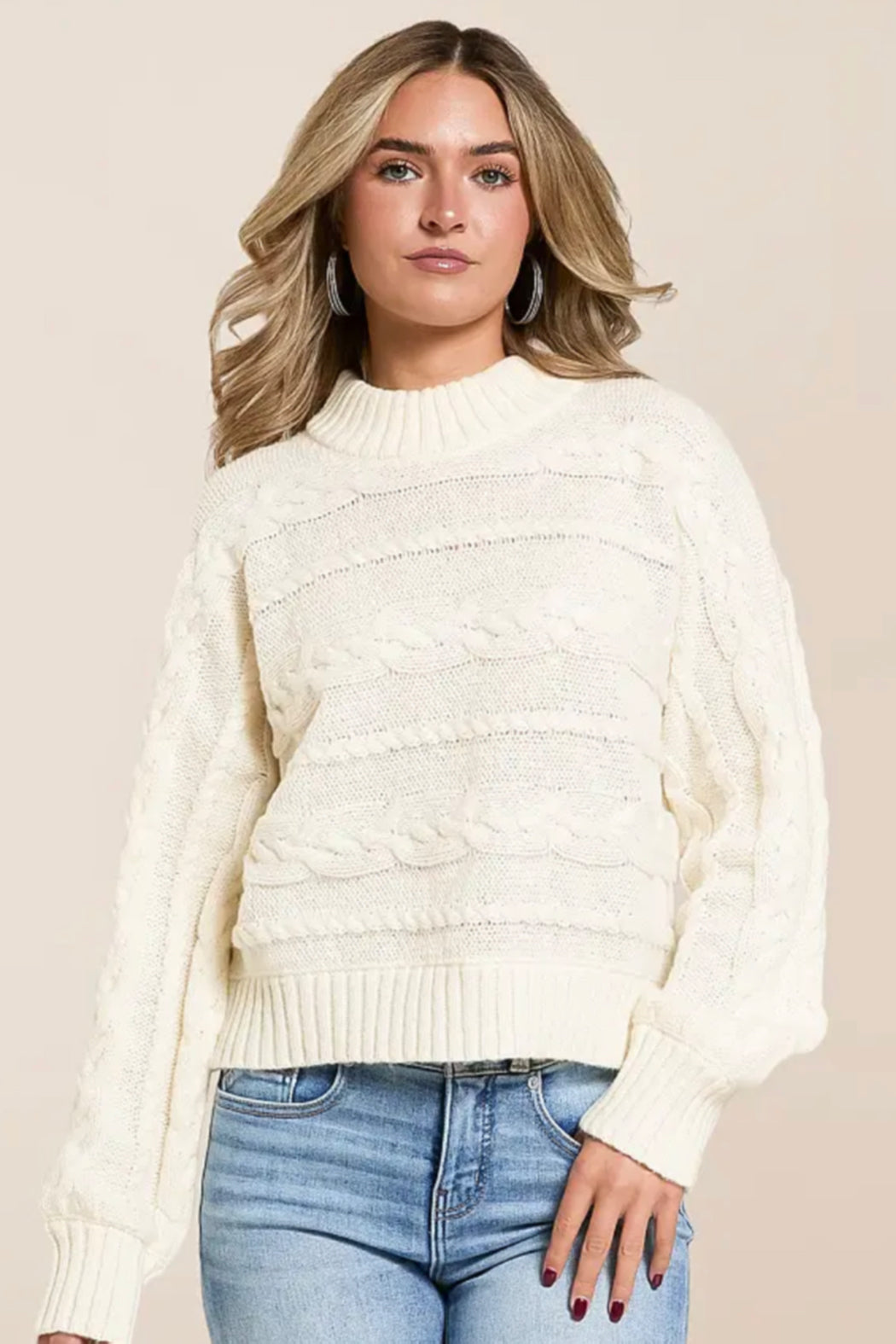 Cozy up in style with the Arctic Cable Sweater! This cropped, cable-knit pullover offers a soft, comfortable fit and classic texture perfect for fall and the holidays. A versatile piece you’ll reach for again and again.