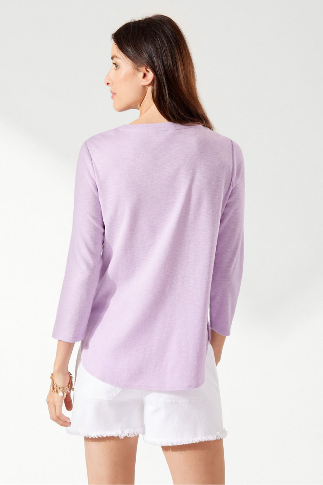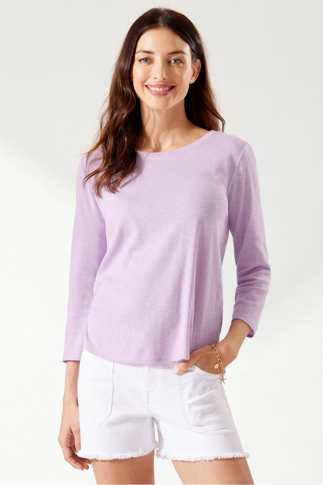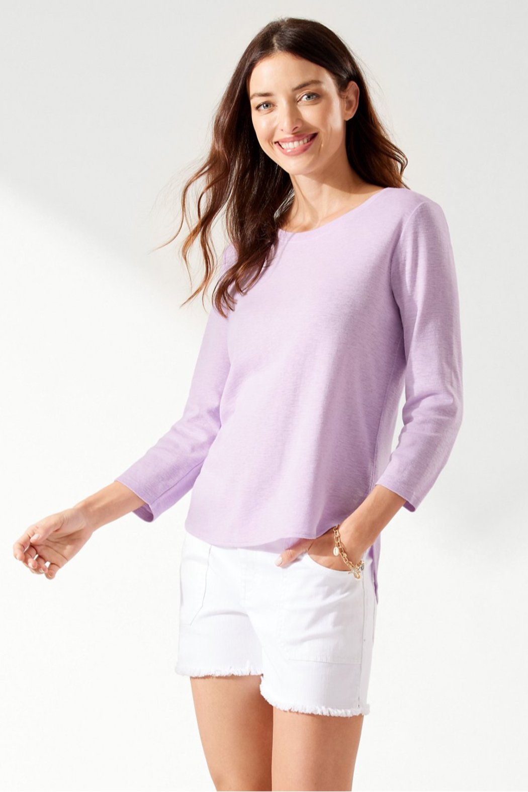 Take it easy in this comfy shirt. Our soft, micro-rib cotton feels amazing against your skin and features a relaxed slubbed texture. The shirttail hem and ¾-length sleeves enhance the laid-back feel. It's perfect for mornings at home and long days in the countryside.