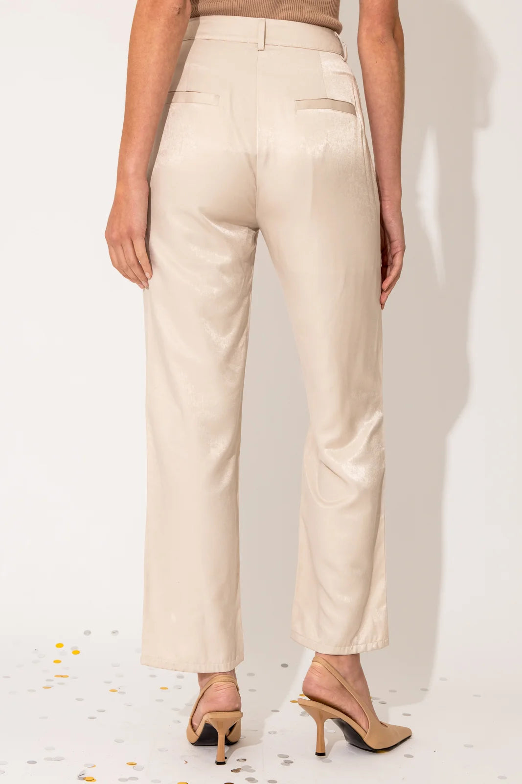Step up your style game with our Mid Waist Satin Crop Plated Pants. These pants feature a flattering mid waist and chic crop design, perfect for any occasion. Made with soft, silky satin, they offer a comfortable and luxurious fit all day long. Elevate your wardrobe with these must-have pants.