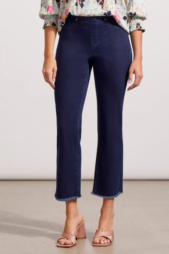 Tribal's essential mid-rise straight jeans gives your behind the perfect lift. The thoughtfully designed jean is slim-fitting through the hip, butt and thigh with a straight leg. A frayed hem to finish provides a fresh twist on the classic.