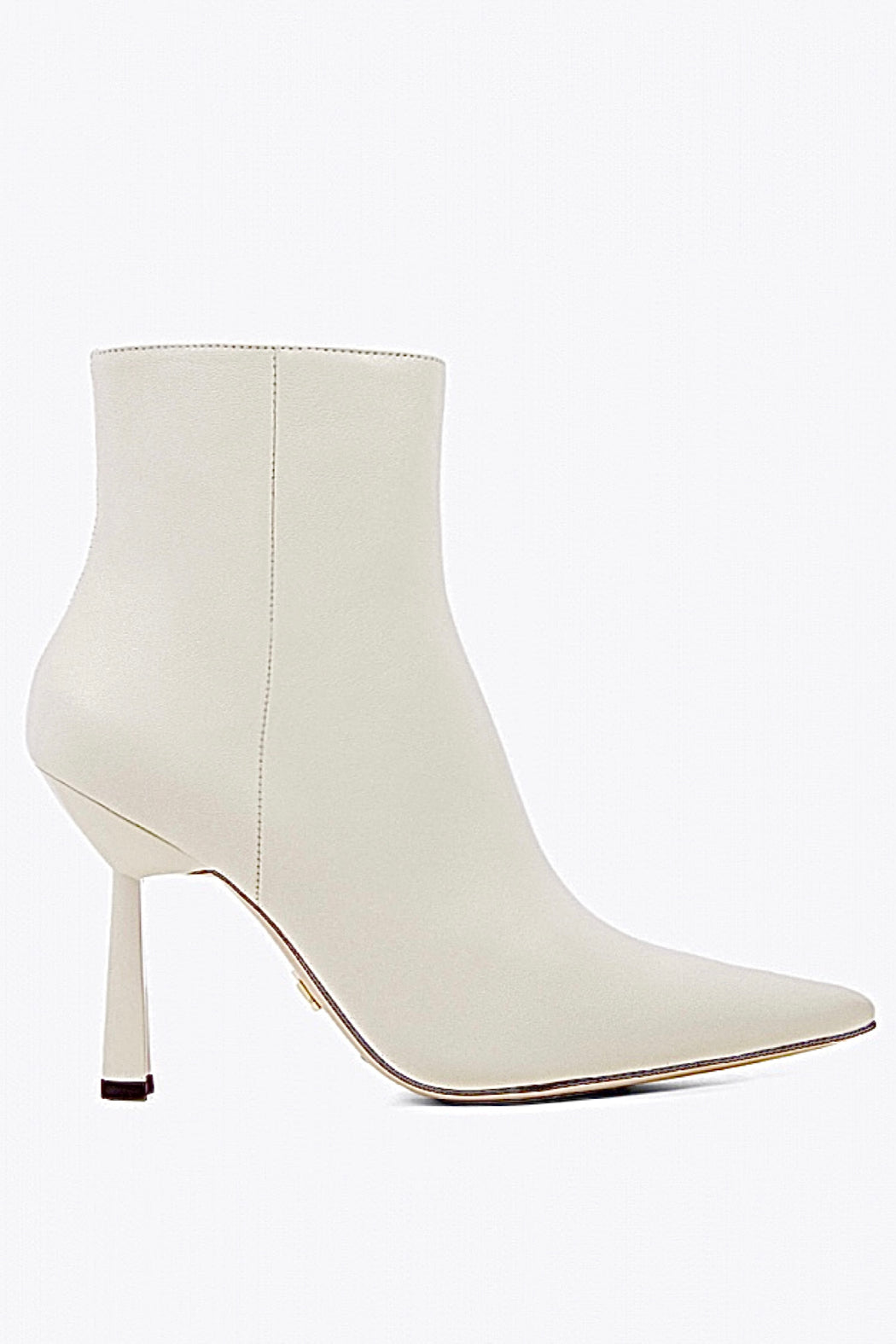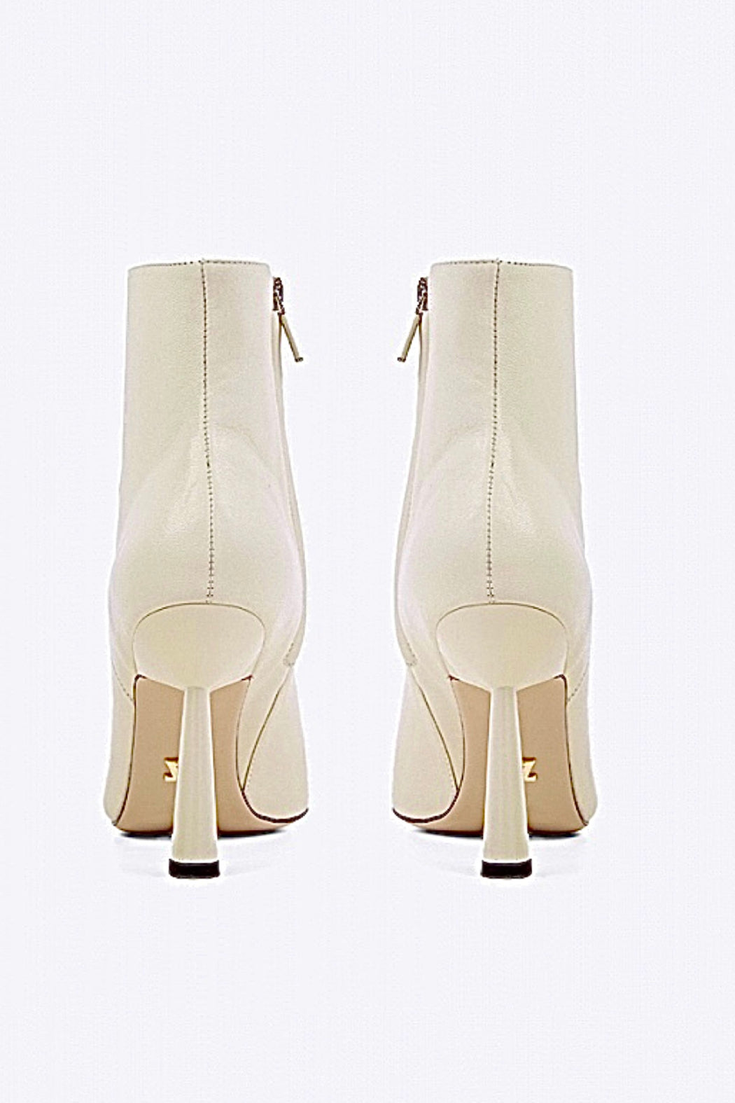 ??Heeled ankle boots in off white leather with a covered heel. Height of heel of approx 7,5 cm.
