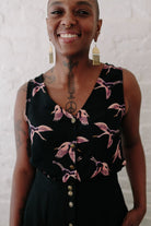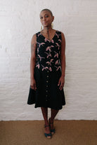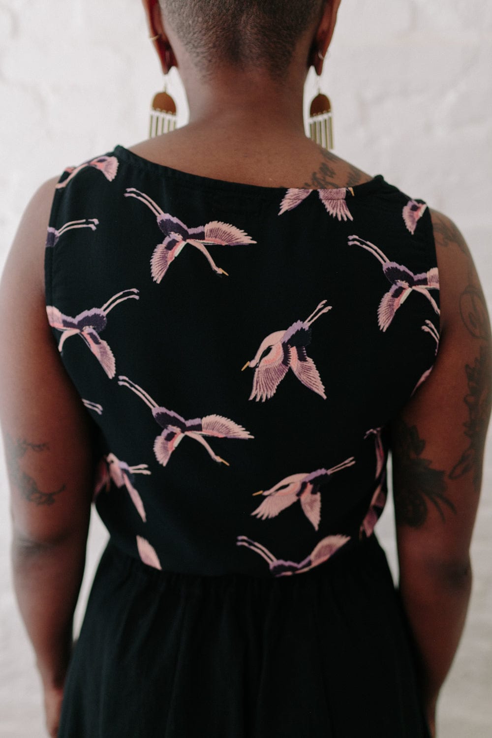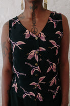 Made from a vintage black rayon with amazing pink and purple print of cranes.